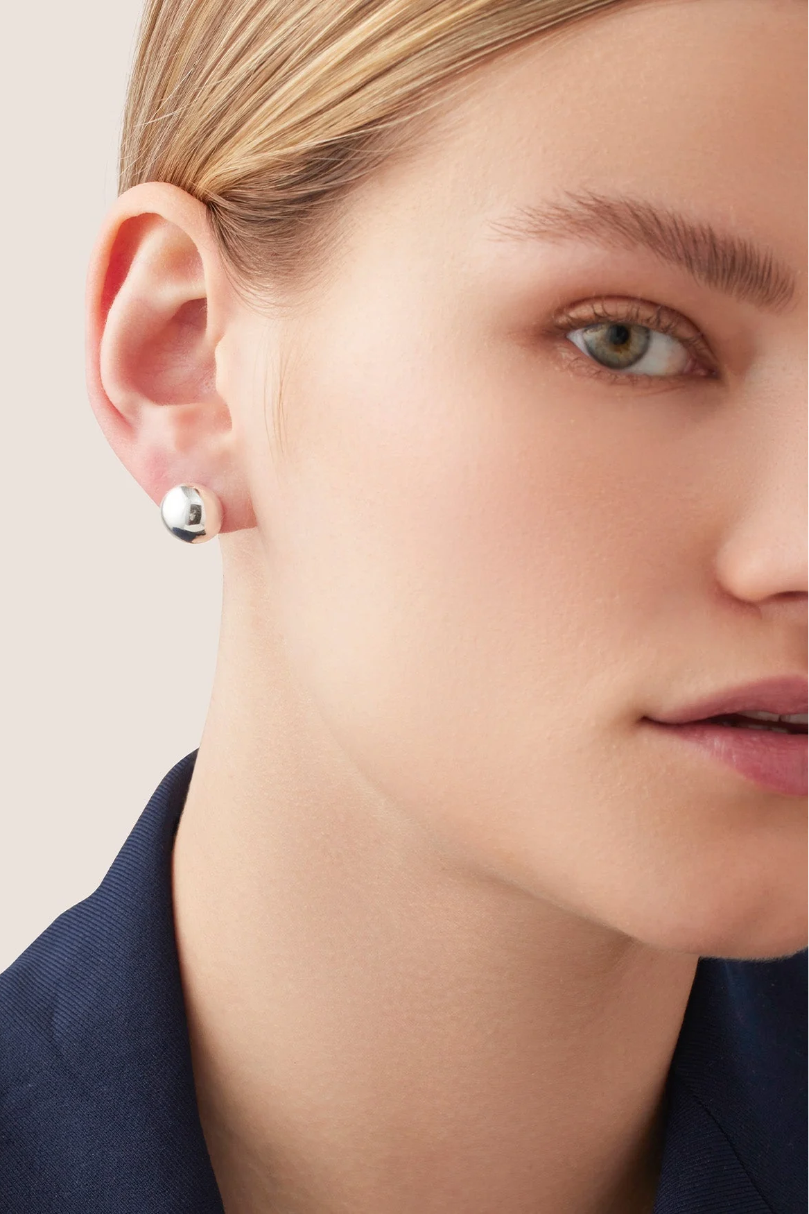 A luminous pair of stud earrings with a dome silhouette, creating the effect of a perfect sphere. This elevated design lays flat, curving toward your ear and slightly hugging the lobe. Finished in high-polish silver or gold.