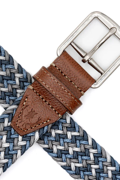 The Newport belt is a great way to add subtle texture to your everyday outfit. Featuring woven Italian rayon and a multicolored blue fabrication, it's the perfect belt for the season.