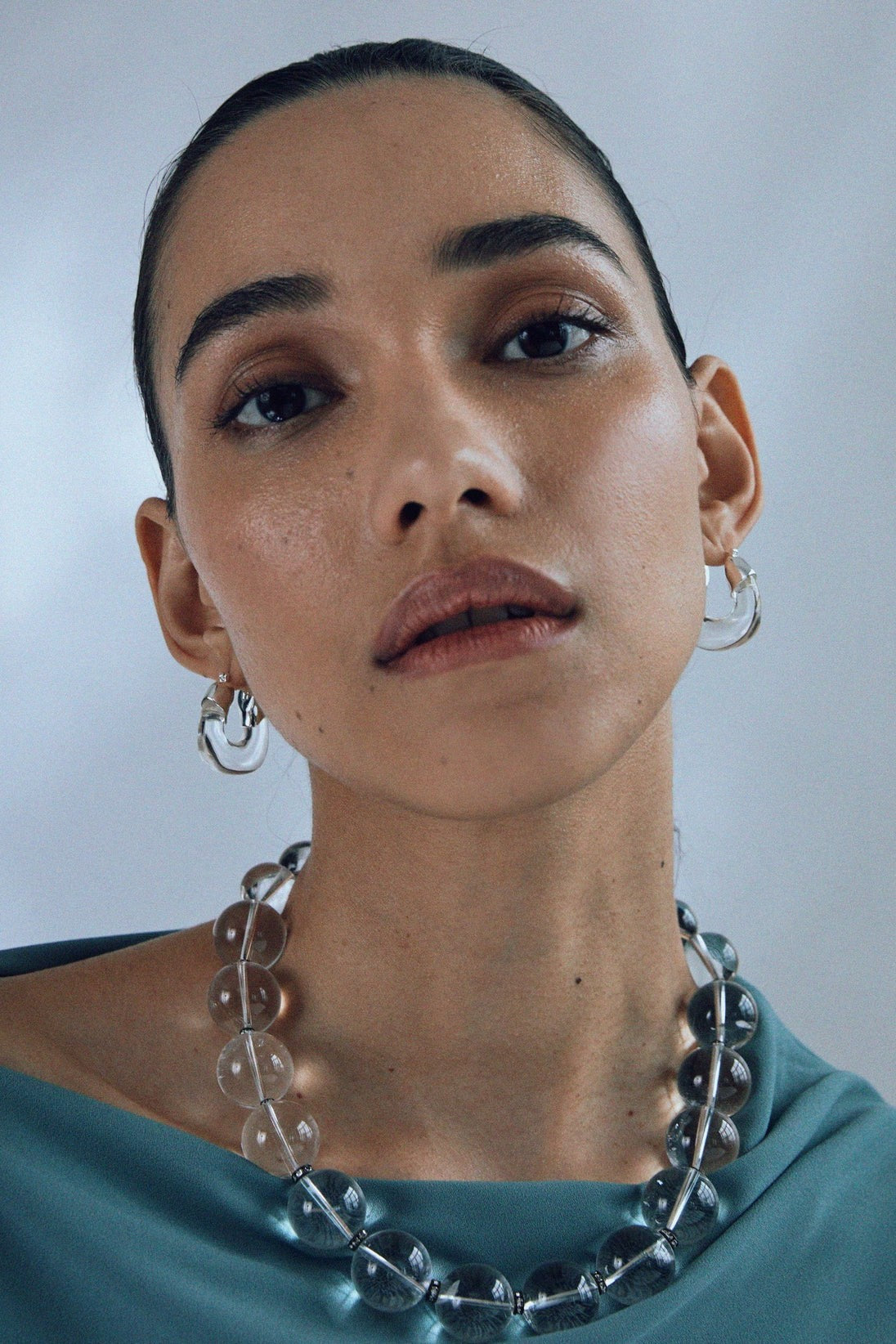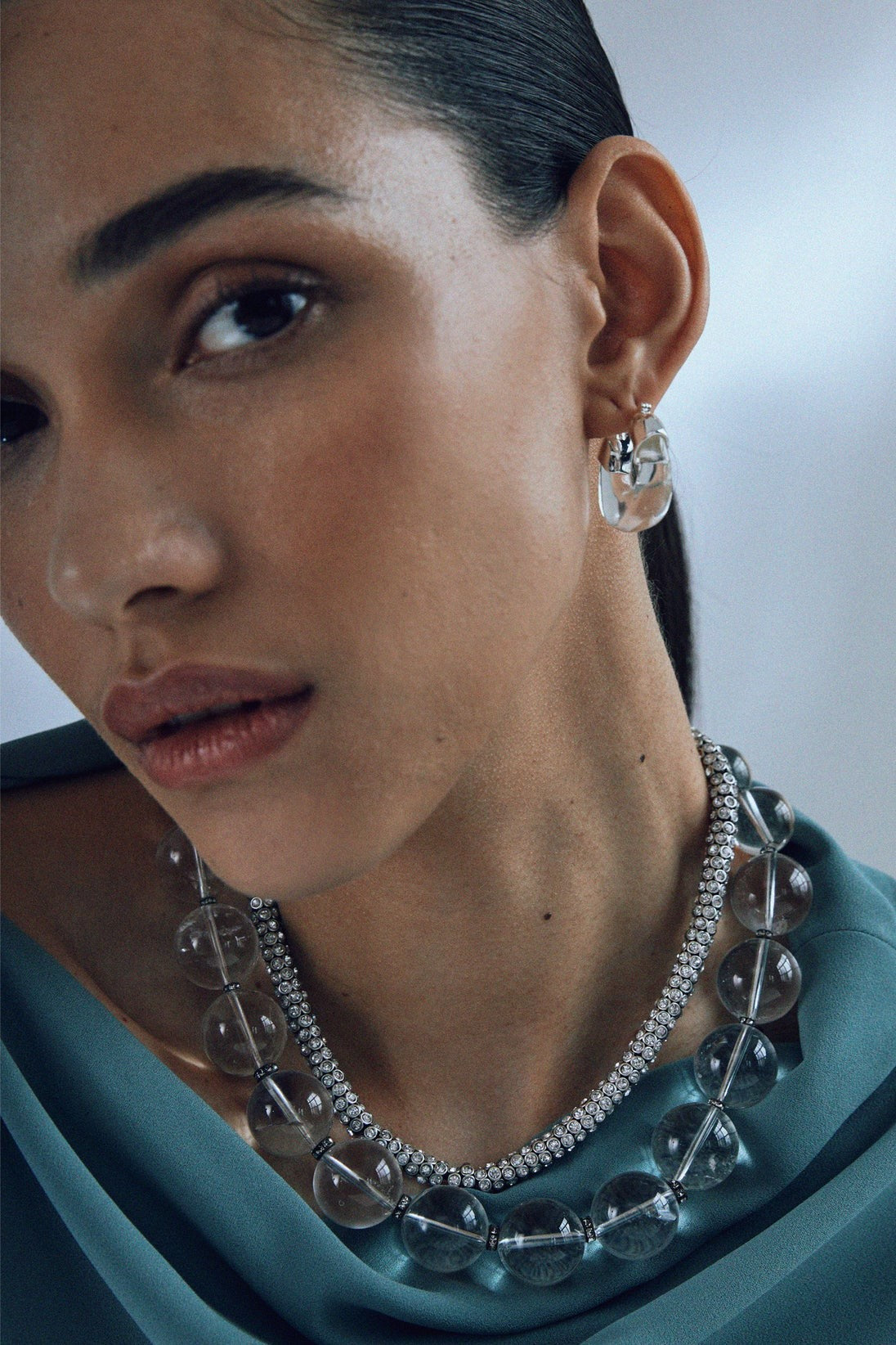 Make it mini! Lizzie Fortunato's iconic, best-selling hoop earrings just got even more wearable, with a slightly smaller drop to suit any style situation. In sterling silver-plated brass and transparent resin.