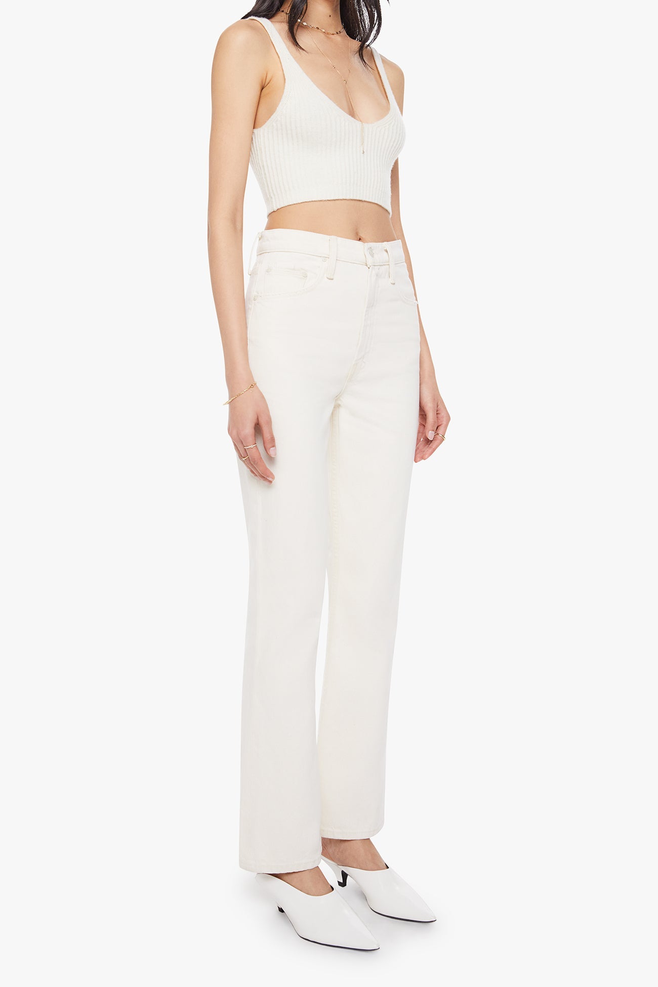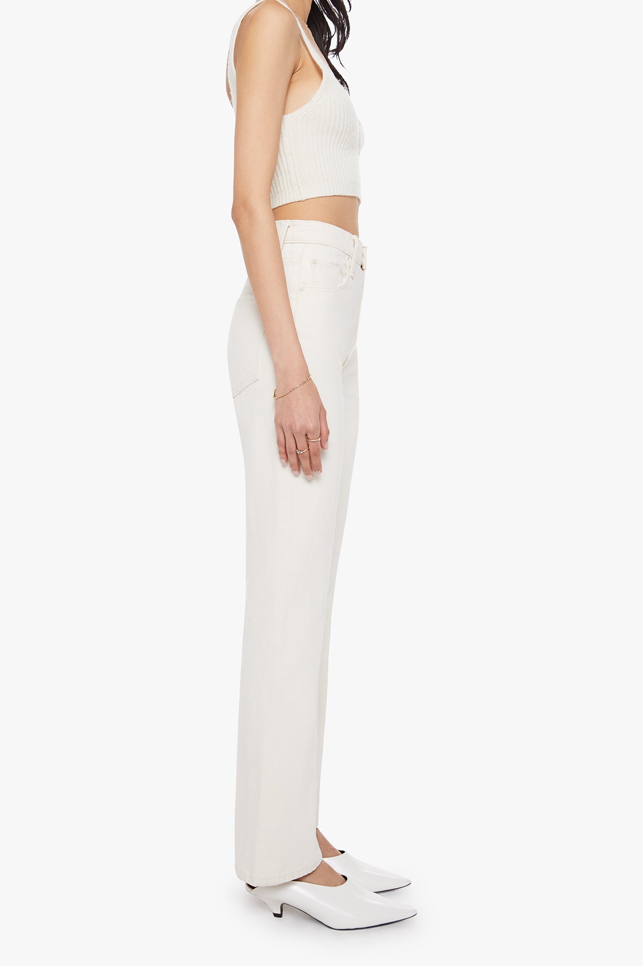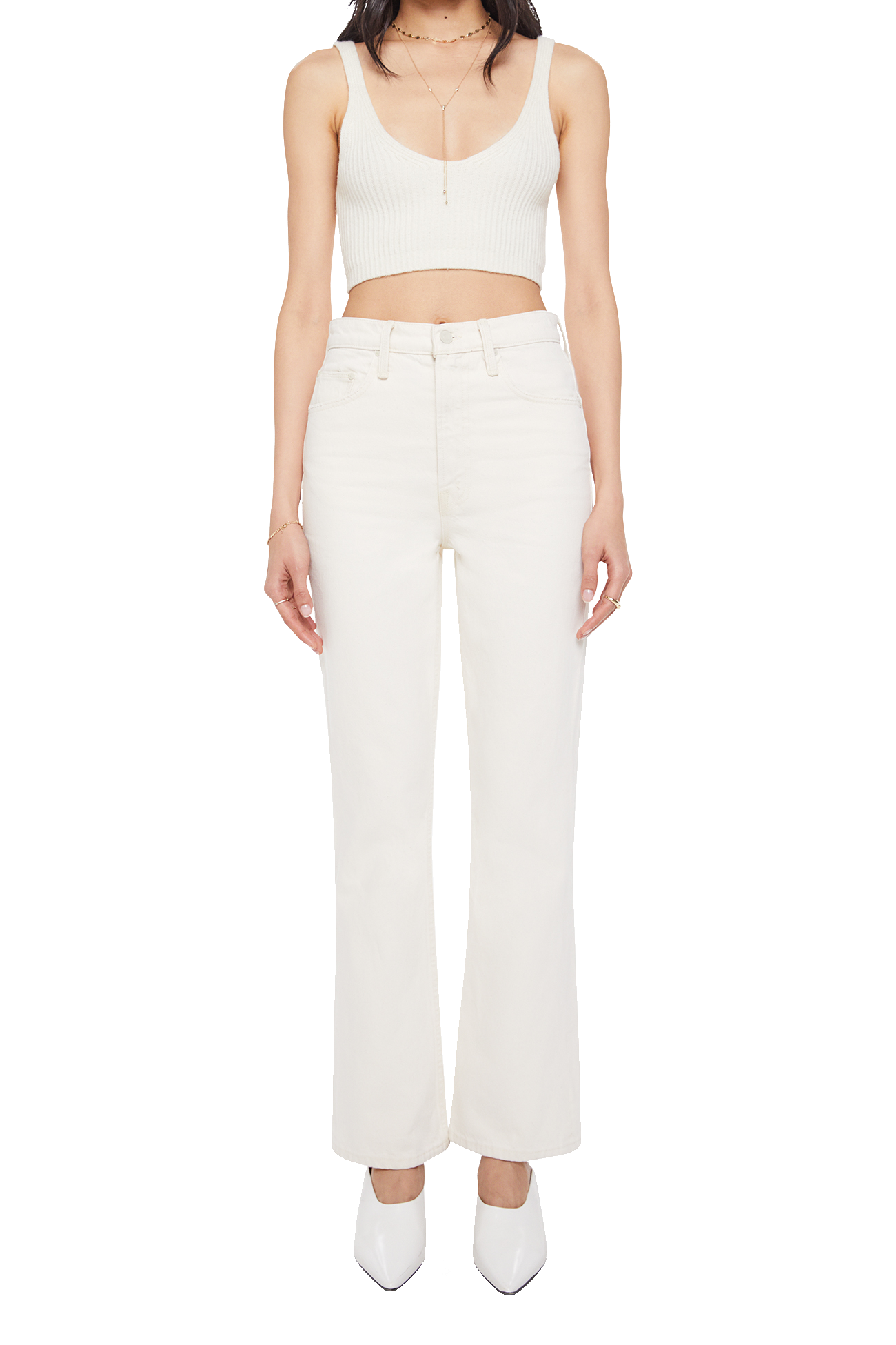 Designed to sit on the hips with a slouchy fit, these jeans feature a flared leg, zip fly, a 32.75-inch inseam and a super high rise with a slightly dropped crotch. Cut from rigid SUPERIOR cotton, Natural Selection is a creamy white with tonal hardware.