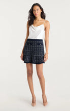 The Ainara Skirt brings a chic edge to your winter wardrobe with its mini length silhouette. Designed to pair effortlessly with cozy layers, it keeps your look seasonally stylish while allowing you to showcase your favorite boots and tights.