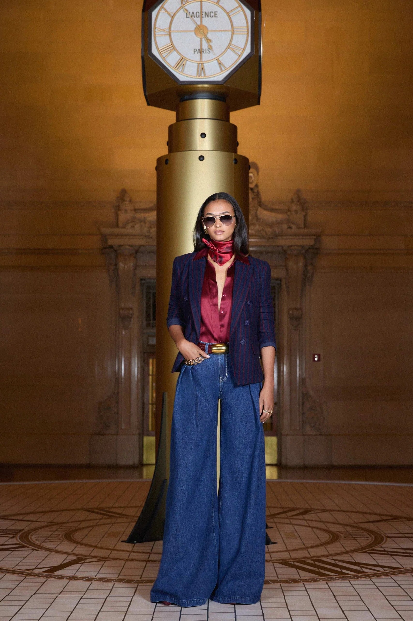 This super-sculpted Kenzie blazer is a L’AGENCE classic and a bestseller season after season, featuring a tailored slim fit. Cut from a rich wool blend in deep navy with striking red pinstripes, it brings modern edge to a timeless double-breasted silhouette.