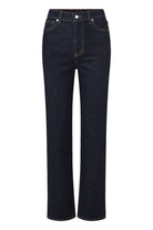 The straight-leg jean, perfected. Expertly crafted in LA from dark-wash Italian stretch denim, the Leah fits snug through the hip and thigh before falling into a classic straight leg. It’s finished with an easy mid-rise waist and ankle-length hem—perfect for showing off your shoes. Style with a simple T-shirt and dickey jacket for a classic VB look.