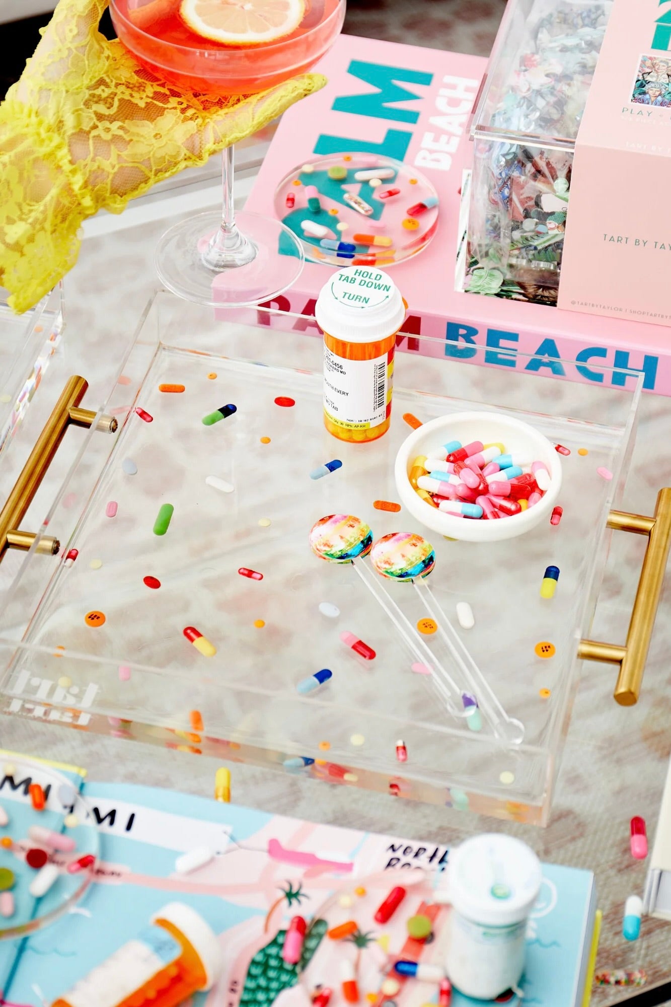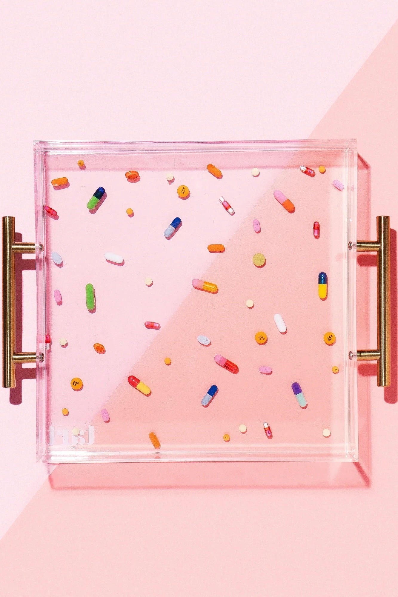 PILL+GOLD ACYRLIC TRAY W/ GOLD HANDLES