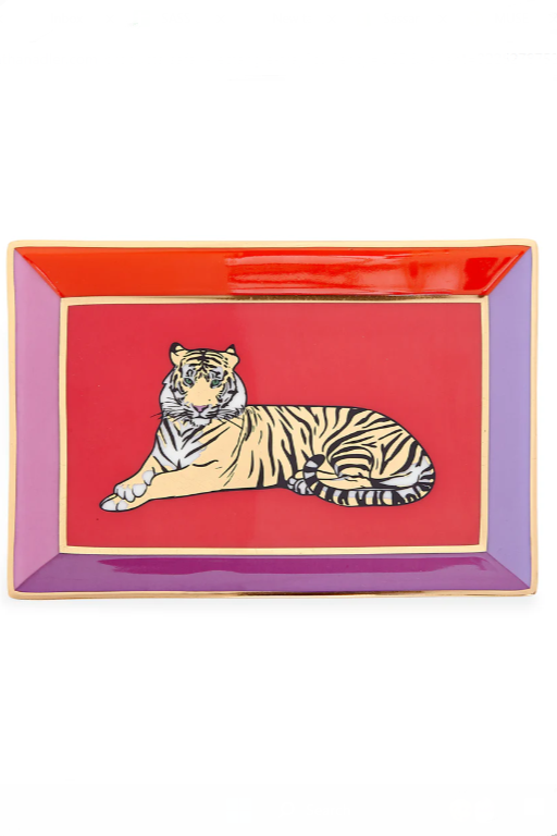 The Safari trays and catchalls feature a wildly divine feline lounging fiercely. On a bold orange background, she brings a pop of adventure to any tablescape. A little bit of WASPY chic, and a whole lot of savage style. Crafted from high-fired porcelain and accented with real sparkly gold for extra glam. Packaged in a nifty gift box, it makes a perfect hostess present (or pick-me-up for yourself).