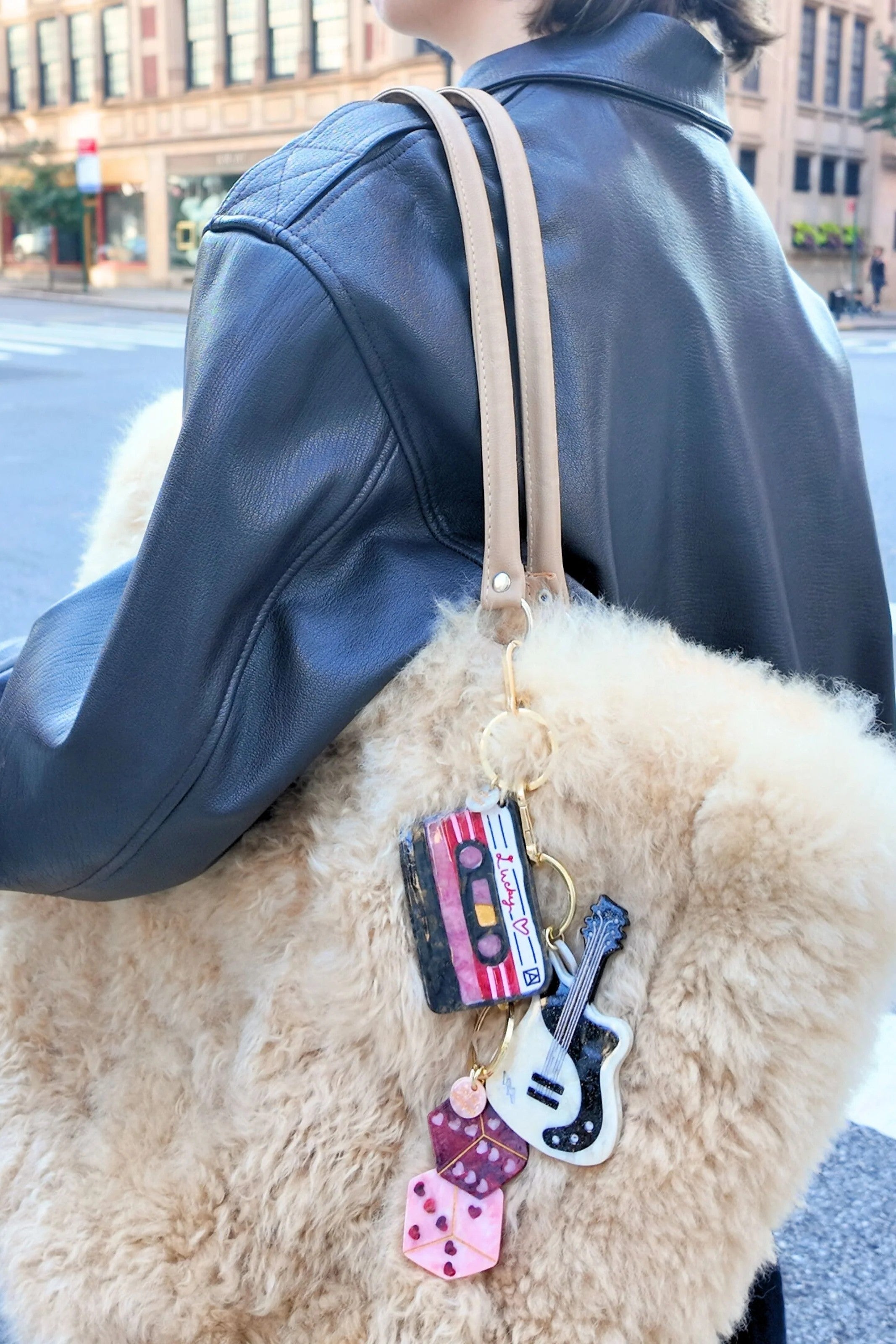 Crafted with super-strong biodegradable acetate, this versatile pieces can be used as a bag charm or a statement keychain.