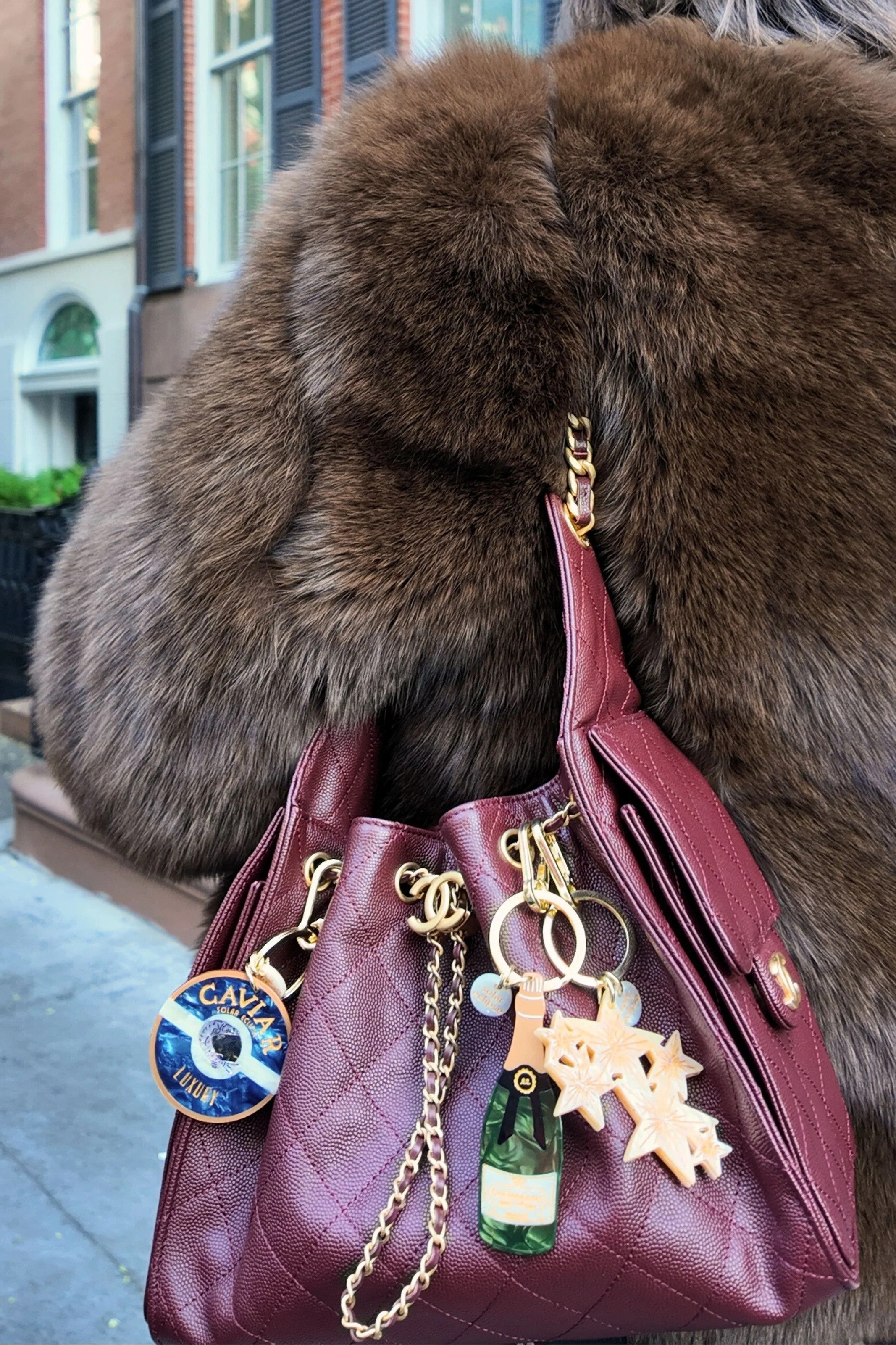 HAND PAINTED CHAMPAGNE BAG CHARM & KEYCHAIN