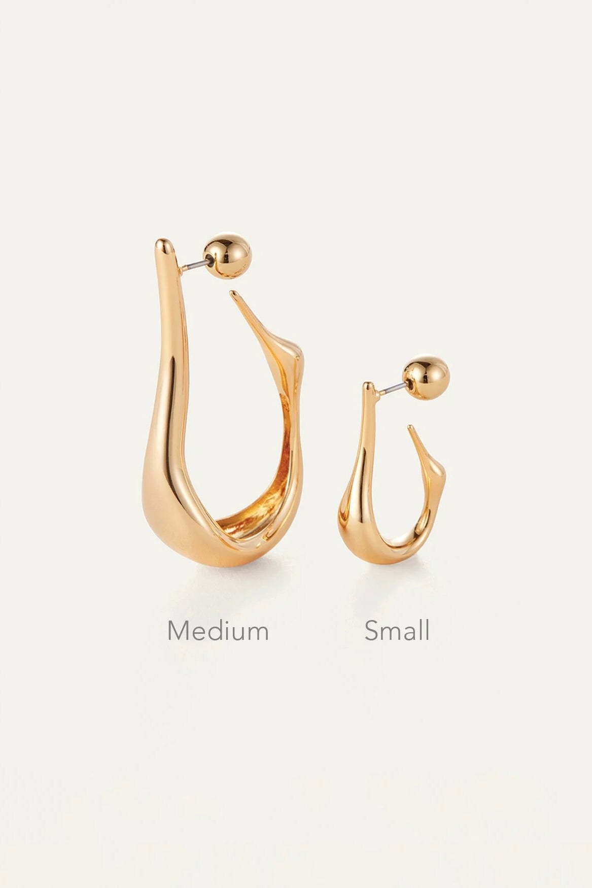 The theatrical beauty of an egret bird is captured in this pair of elevated, small hoop earrings. Finished in high-polish gold.