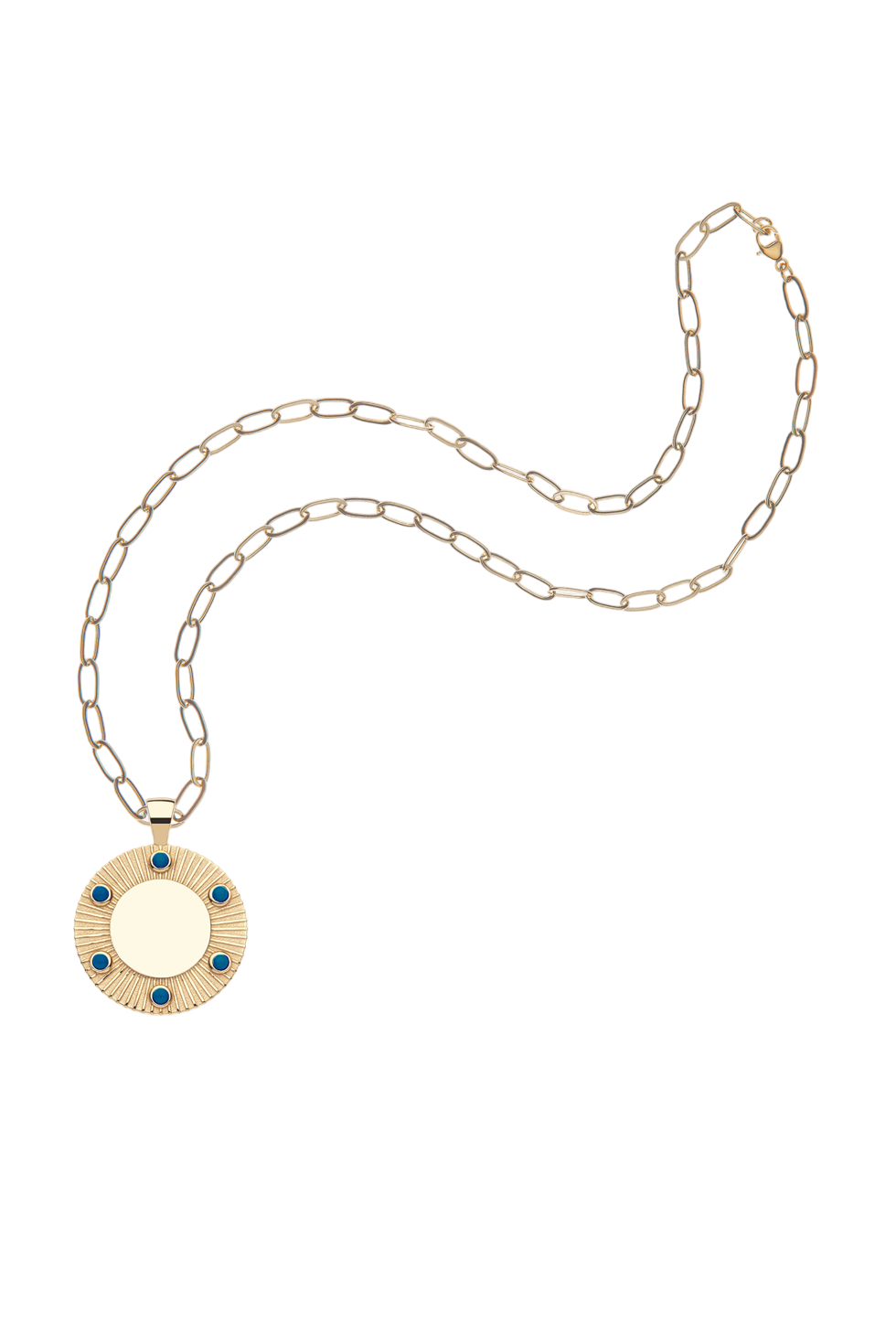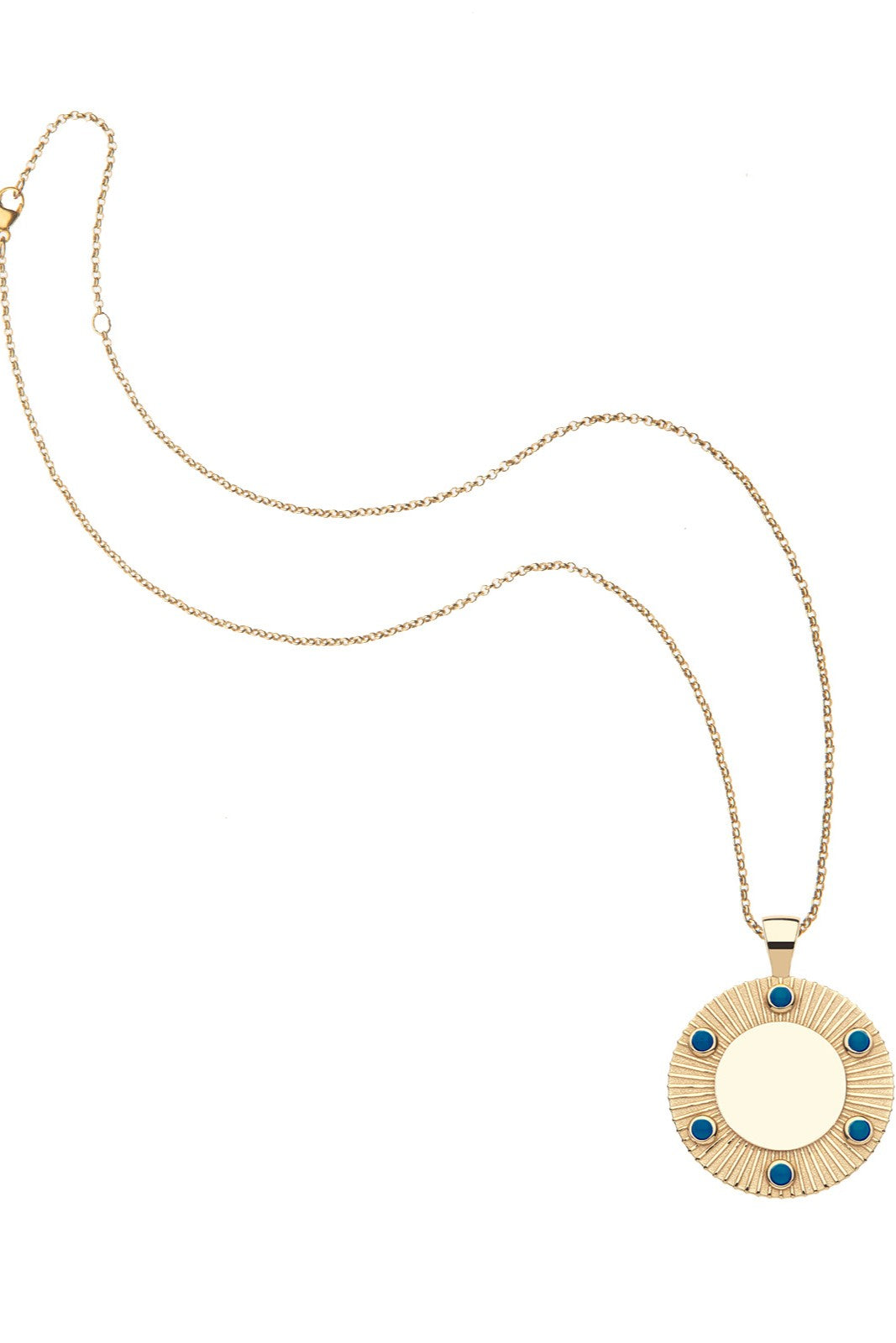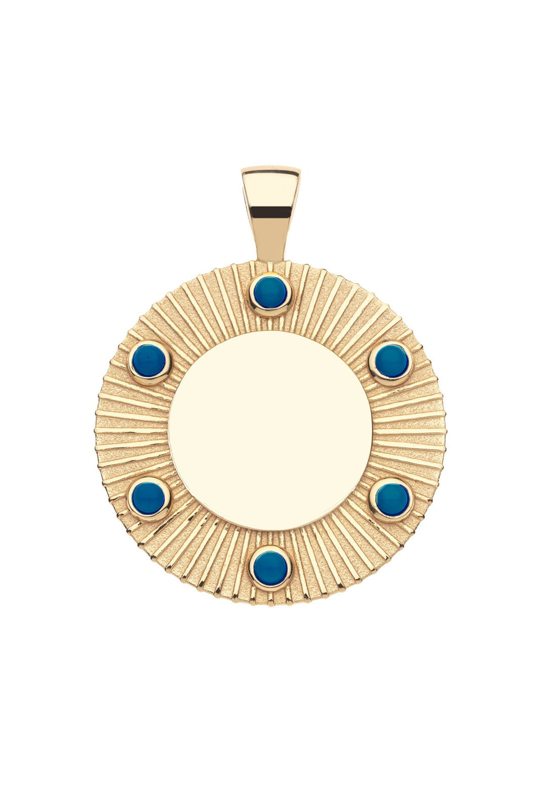 Life is a cycle of constant motion, ever turning like the Earth around the sun. Inspired by the planets circling the sun, the turquoise stones on this pendant revolve around an engravable center. Engrave it with your initials or those of someone you love, and let the stones be reminders of those who surround you on your journey.