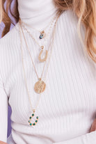 Set with white topaz stones inside of stars and inscribed with "Make Your Own Luck" on the back side, this classic horseshoe pendant is made to guide you on your journey and remind you of the lucky you enjoy and the luck you seek.