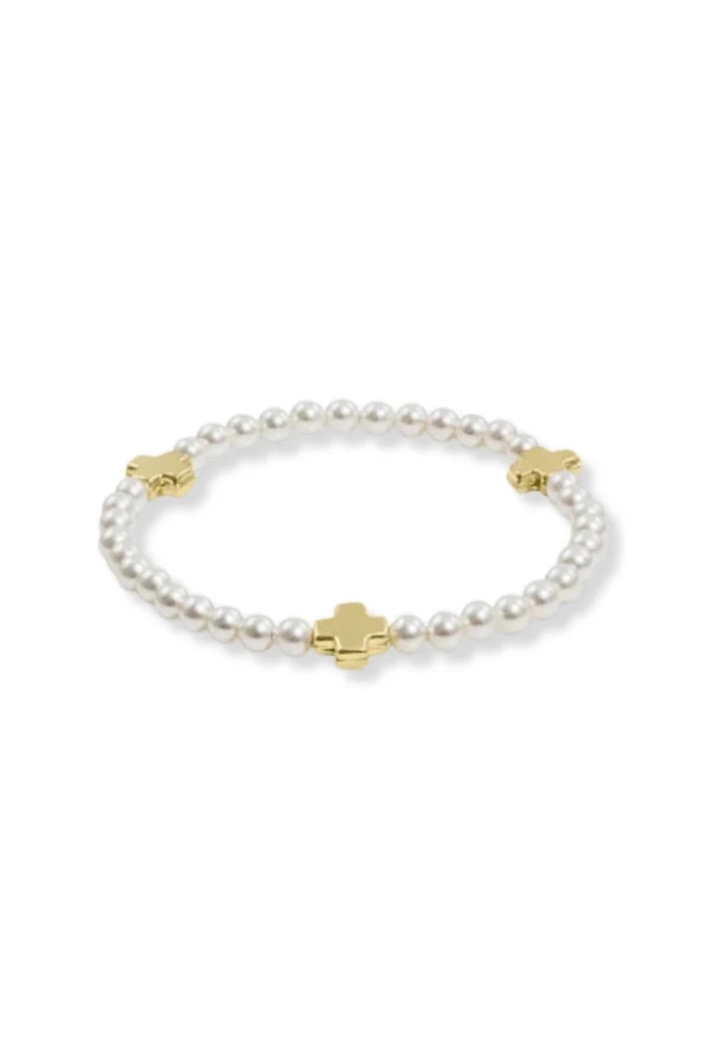 SIG CROSS PEARL PATTERN 4MM BEAD BRACELET