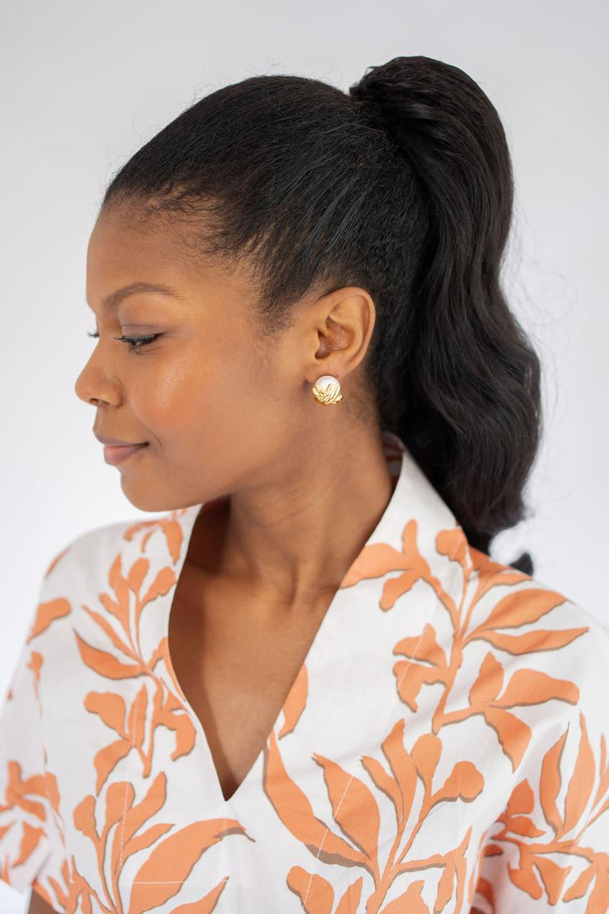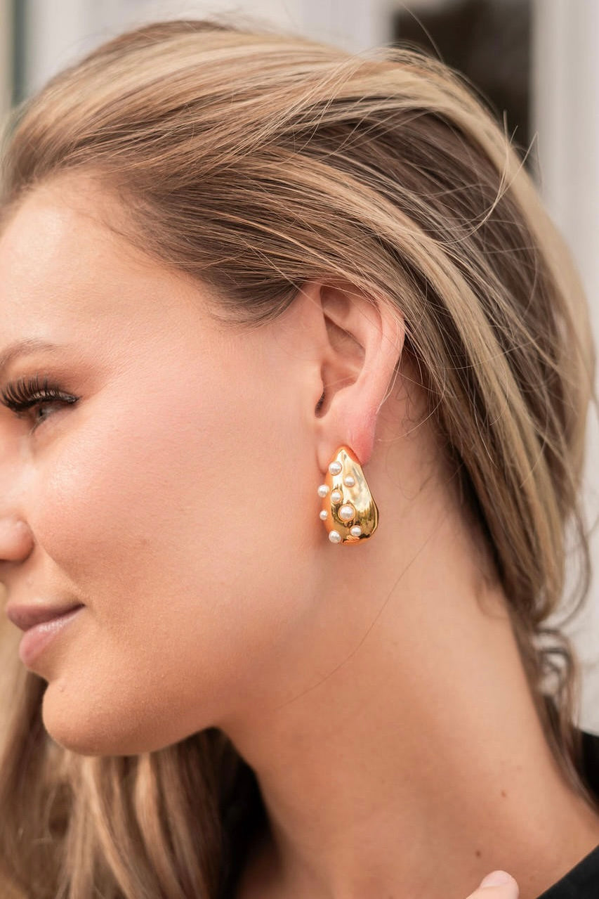 FITZGERALD PEARL HOOP EARRINGS- GLD