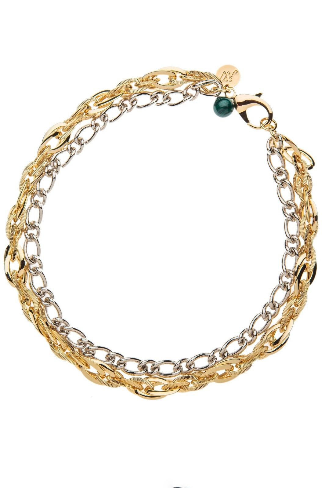16" GILVER DBL LAYER CHAIN W/MALACHITE BEAD