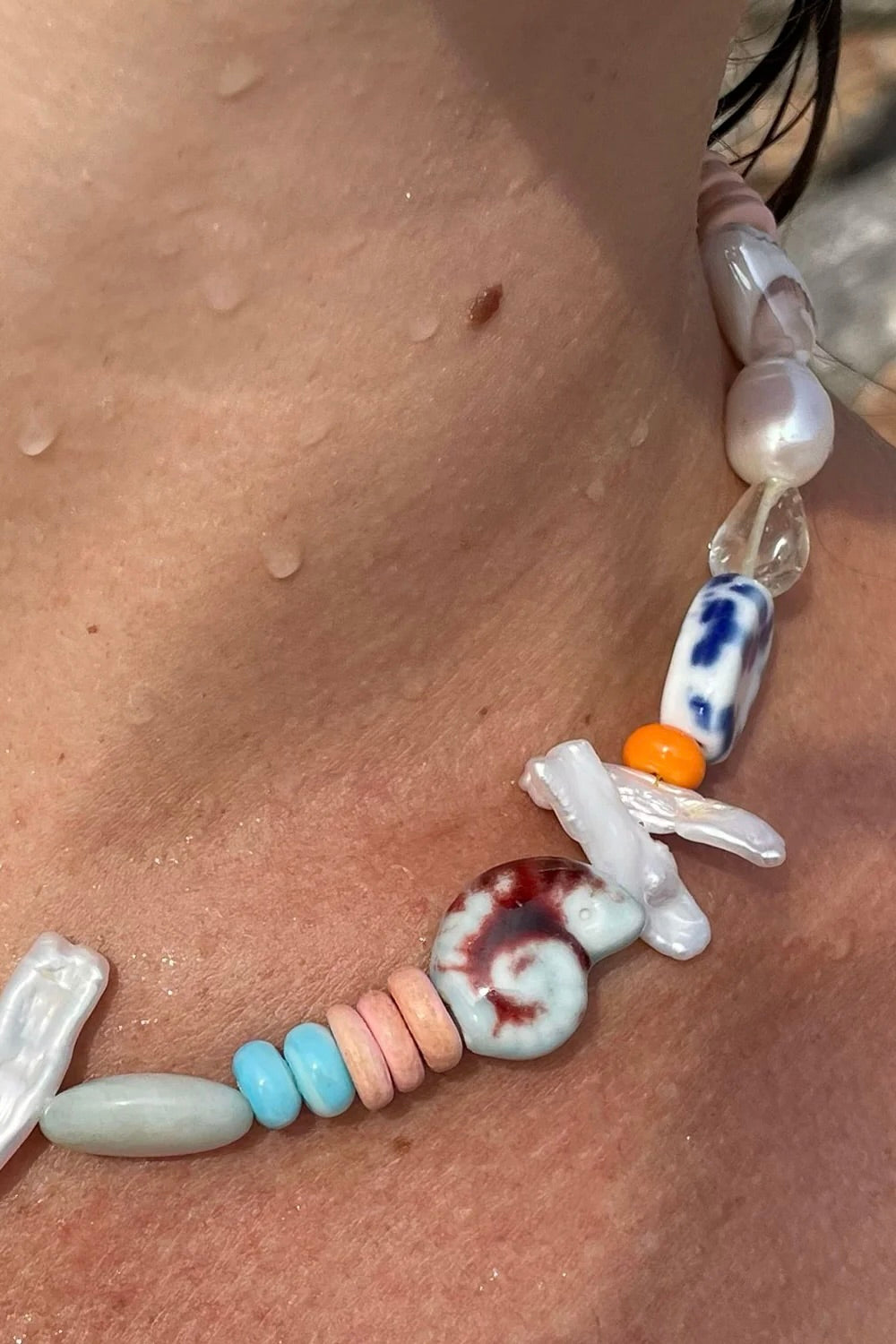 KALEIDOSCOPE CHARM PENDANT NECKLACE- GLD/MOP