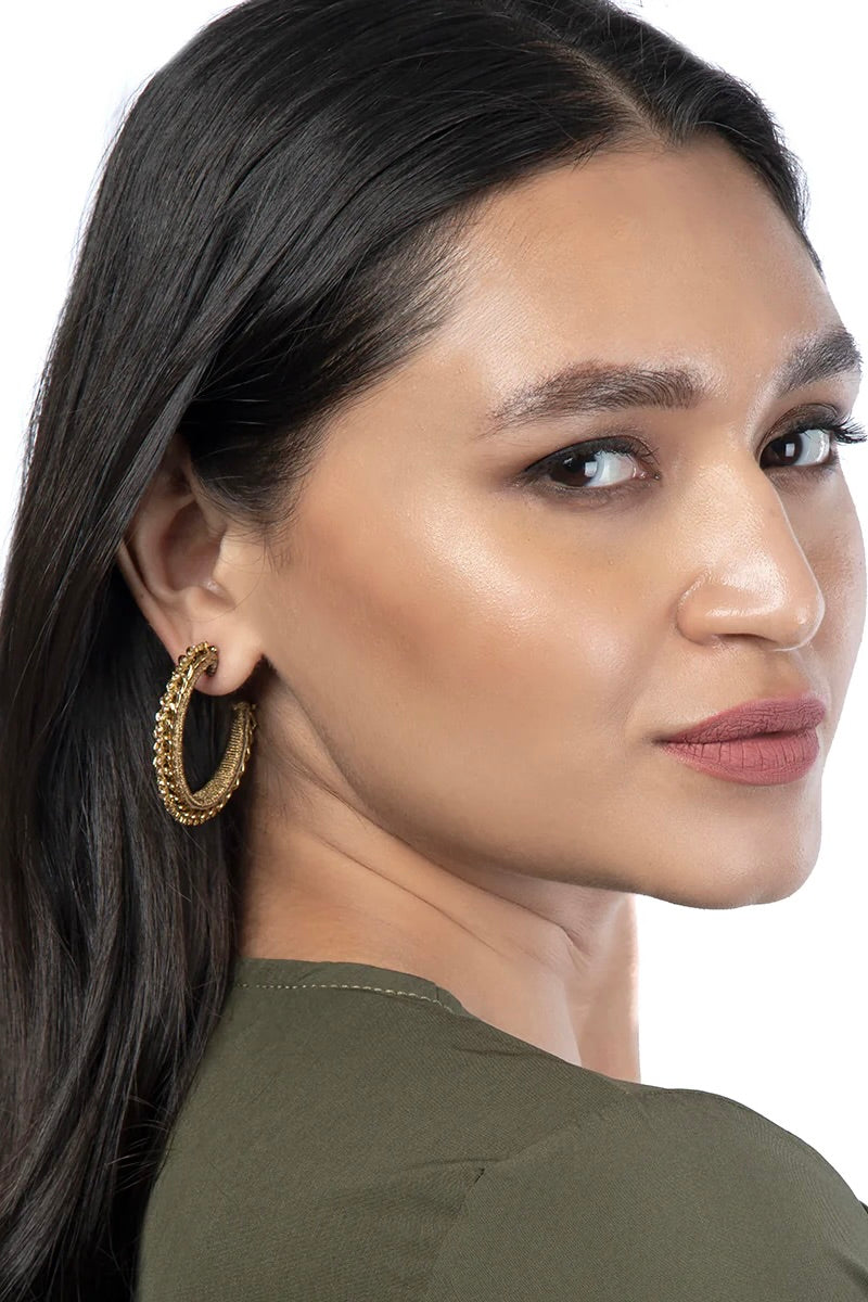 BEADED CLASSIC 1.25" HOOP- 4MM GOLD