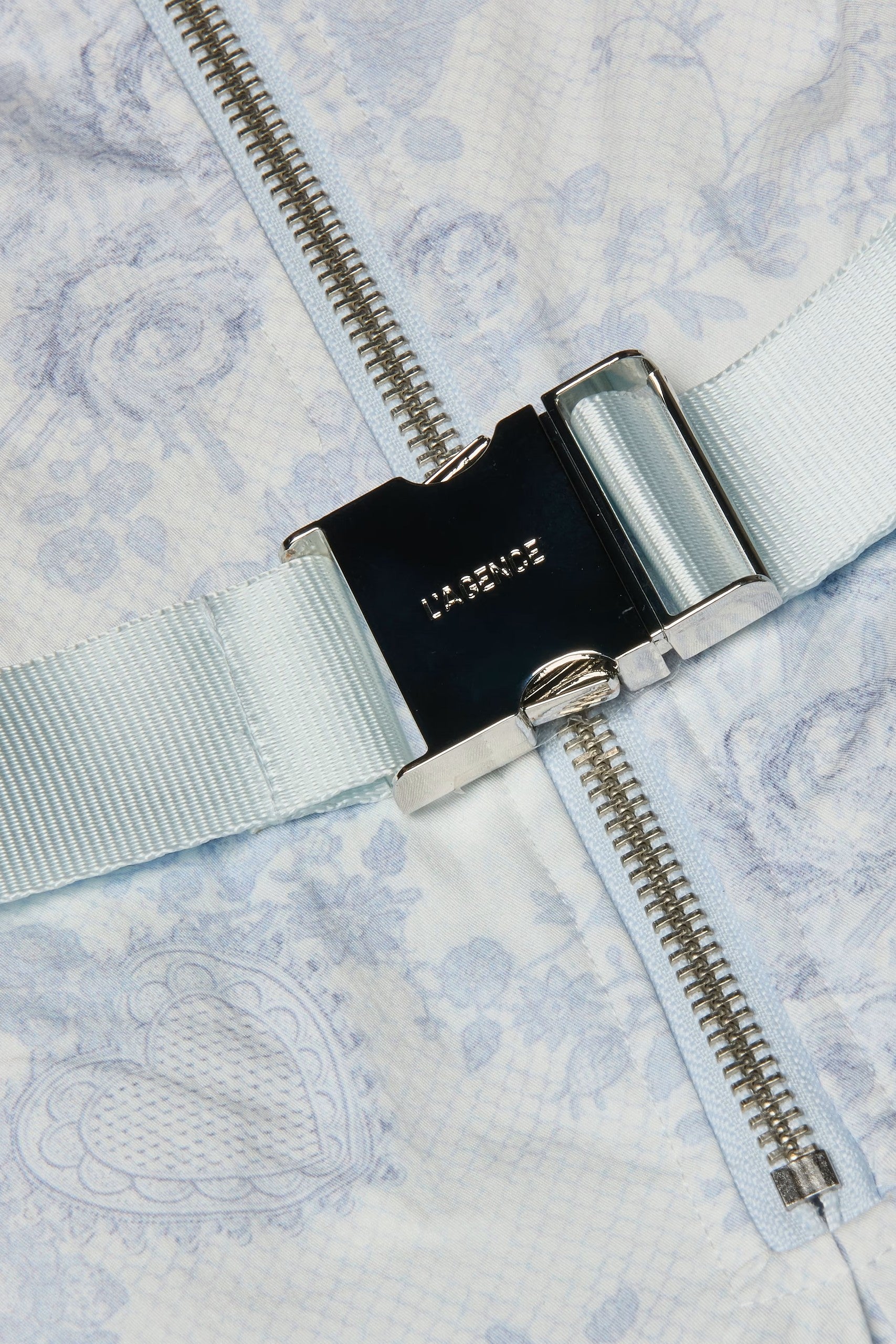 The signature L’AGENCE desk-to-drinks shirt dress, now back in an ivory and blue lace print. Princess seams and a waist belt cinch the look together—and yes, it has pockets. Now in ivory with a blue lace print.