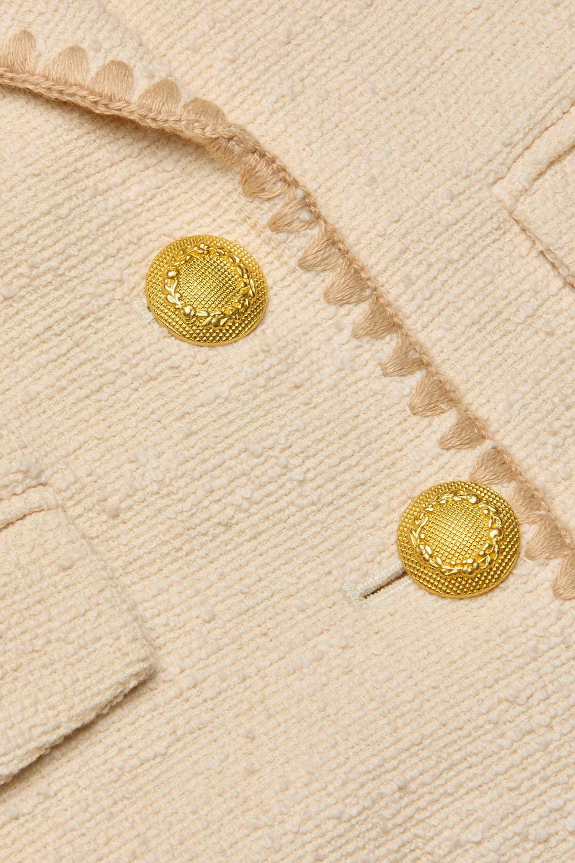 The perfect tweed blazer in a timeless neutral ecru. Contrast between the slub tweed and embroidered trim as textural intrigue to this sophisticated classic. Designed with structured shoulders and a close, fitted cut, the Wylla blazer is a must-have for all seasons.