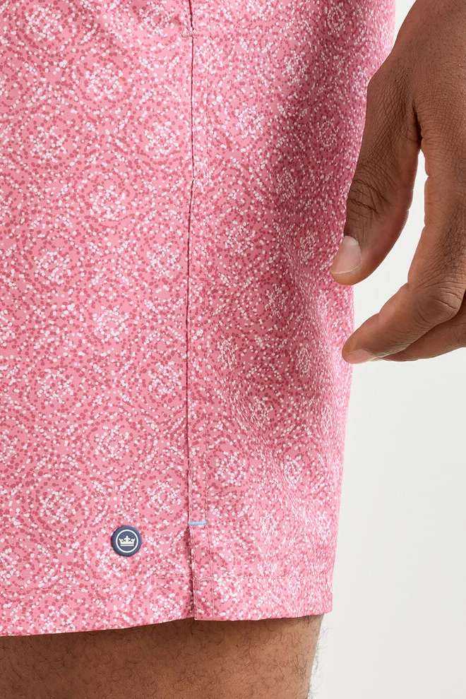 Shaped by a lightweight, quick-drying fabric with plenty of stretch, these go-to trunks take comfort to a new level. They're designed with a fine mesh liner, fully elastic drawstring waistband and a 7" inseam. Spirited prints are dreamed up and illustrated by the design team in Peter Millar's Raleigh, North Carolina studio.