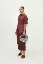 Stretch cotton poplin, with cut out back and adjustable tie for fit flexibility. The ultimate versatile piece, dress up or down.