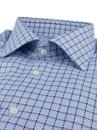 This checked twill shirt is made of twofold cotton. The shirt is detailed with mother of pearl buttons, single cuffs and a cut away collar.