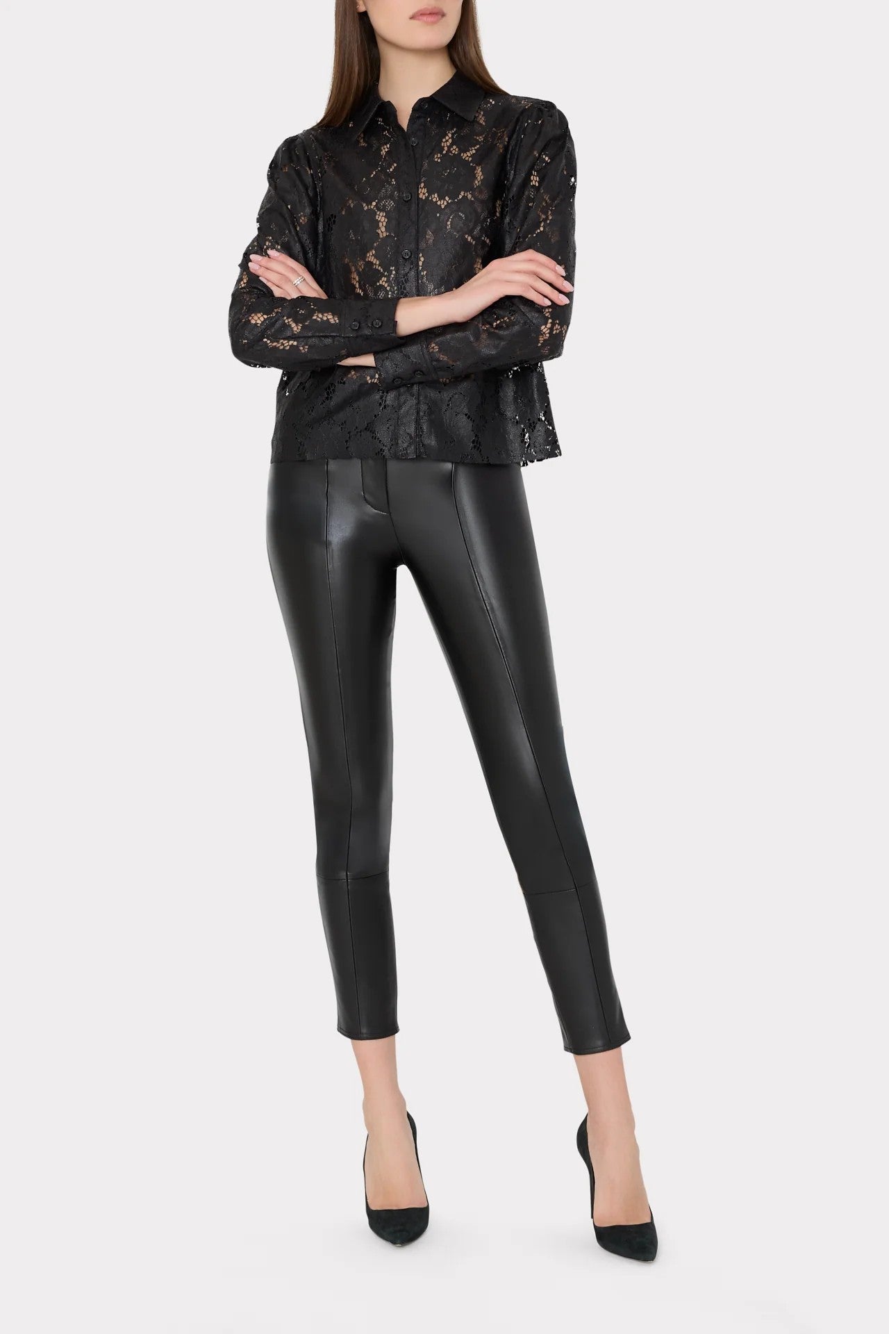 Cut from a textured, embossed leather lace, this is a bold MILLY take on a button-up blouse.