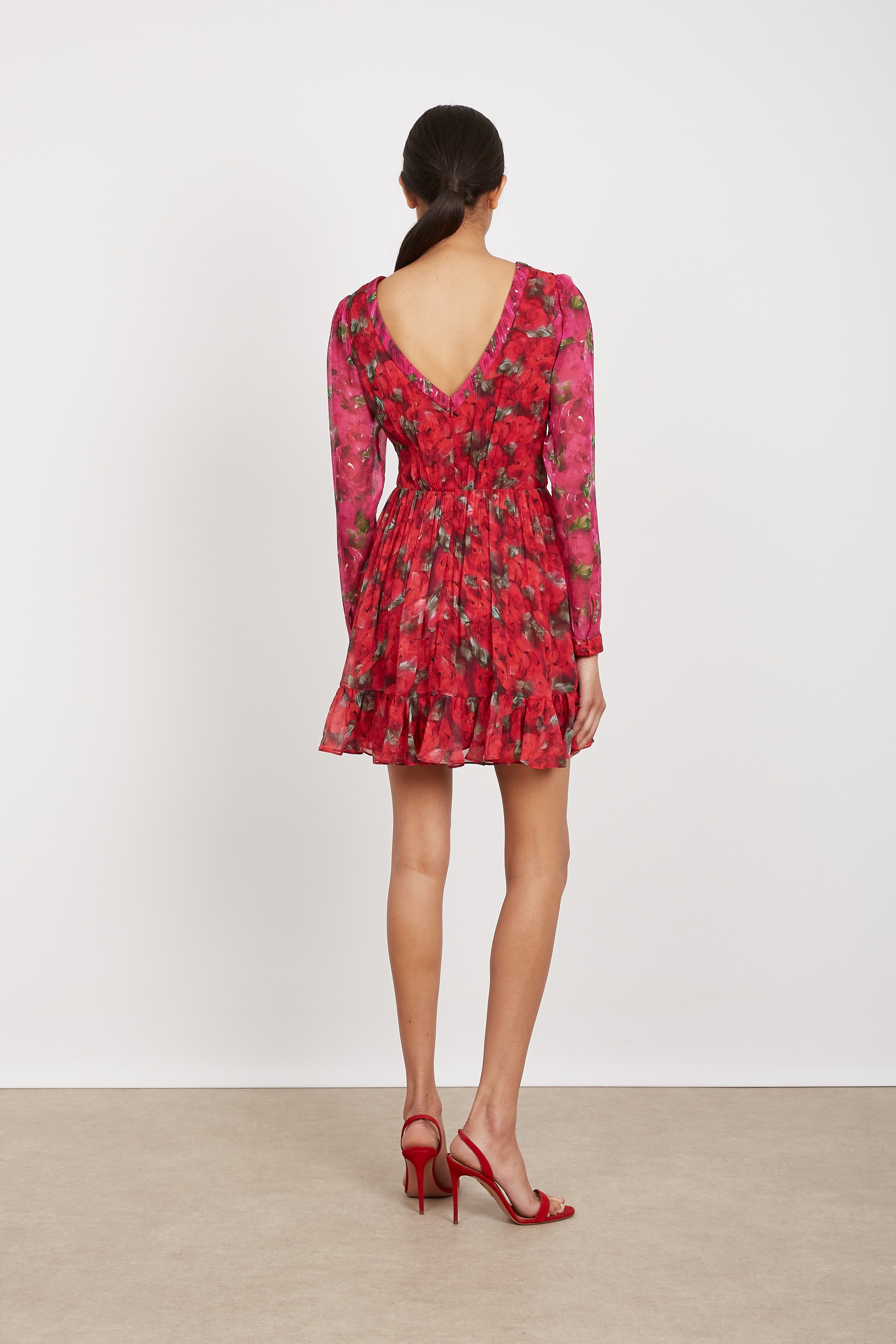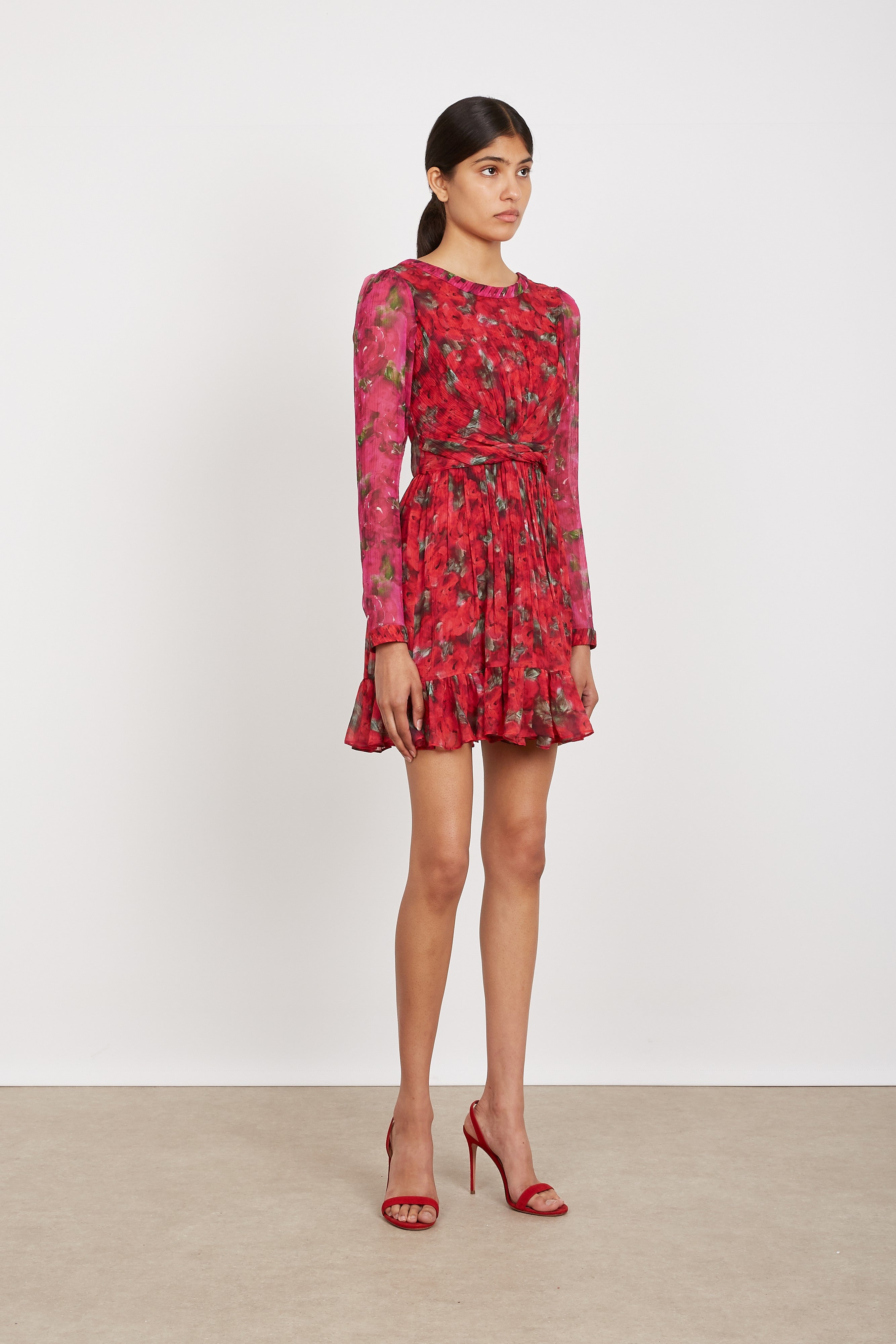 The Blythe dress features a gathered bodice that cinches at the waist with a delicate twist detail, providing a fresh and flattering take on feminine dressing. The skirt flows into a soft A-line shape, exuding fluidity and movement with every step.