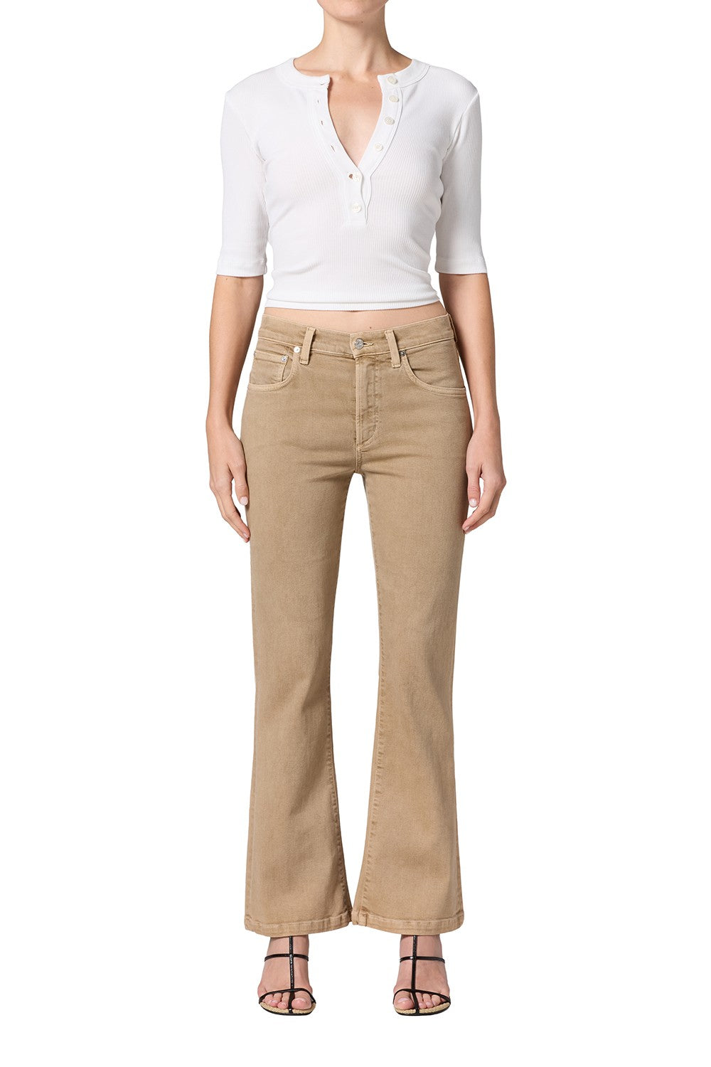 A spring statement, the Genessa top channels a modern Victorian sensibility with its fitted bodice, high neckline, and flutter sleeves. A softly flared peplum with a scalloped hem layers beautifully over separates, including tailored skirts or trousers, or denim for spring celebrations, special occasions, and evenings out.