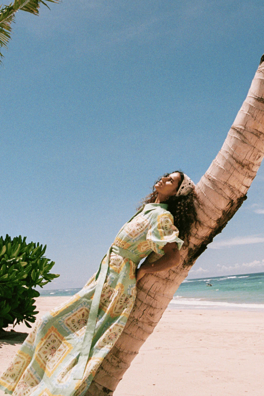 The Paddi Dress in the exclusive Saya Shells print is crafted from a premium Linen blend. Designed with a fixed waist and elasticated back for ease of fit, the Paddi Dress flows into an A-line skirt for a flattering silhouette. Complete with a contrast D-ring belt for an elevated and refined look.