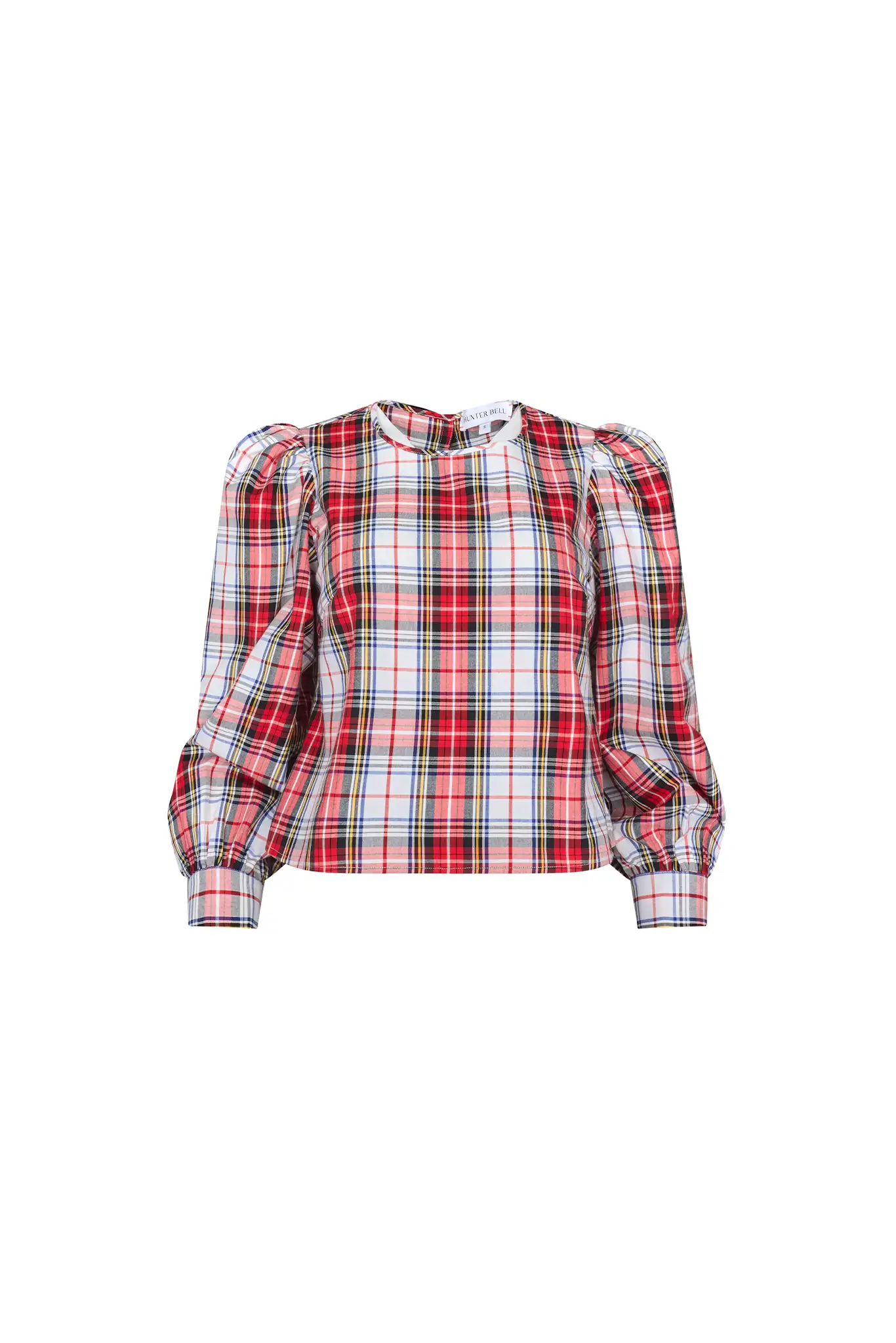 The Lottie Top is a refined take on a classic silhouette, reimagined in Hunter Bell's signature Carlyle Plaid. Designed with a crew neckline and finished at the back with contrast black velvet ribbon ties, it brings a touch of romance to a timeless shape. Full balloon sleeves taper into tailored cuffs, striking the perfect balance of soft volume and polished structure. A versatile piece for the season.