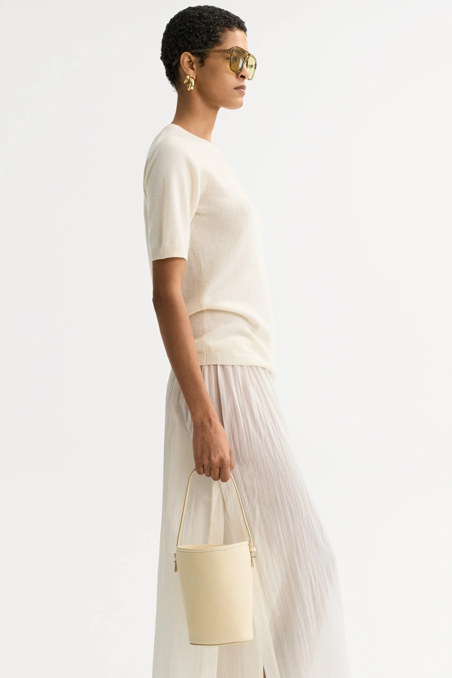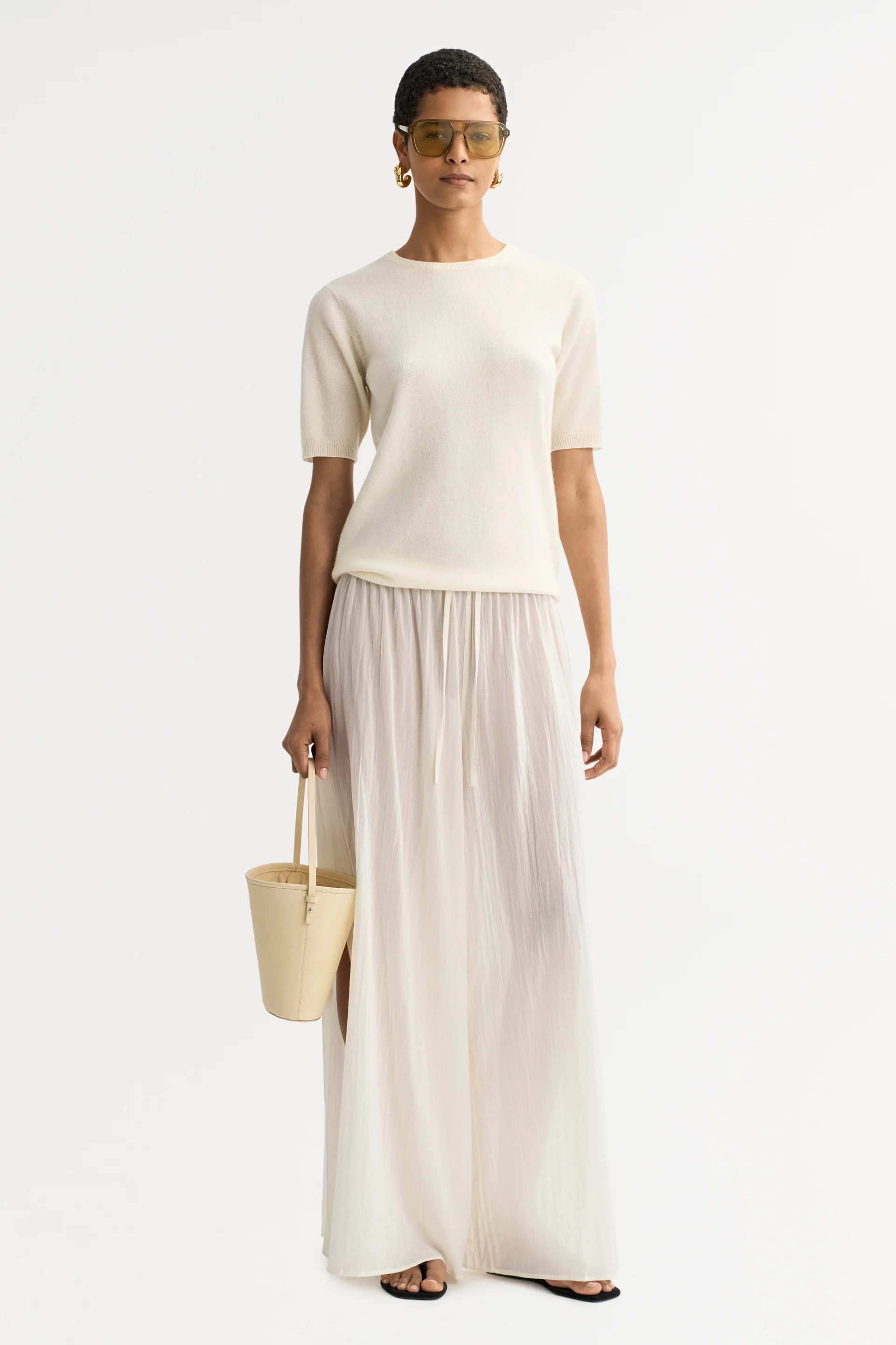 A short sleeved o-neck with regular fit in 100% cashmere.
