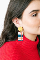 Add a pop of holiday cheer with these Nutcracker Plaid Cabana Earrings. Featuring a playful combination of pink, navy, and red plaid with a touch of golden shimmer, these statement earrings are perfect for festive gatherings. Lightweight and bold, they bring a fun, vibrant touch to any winter look.