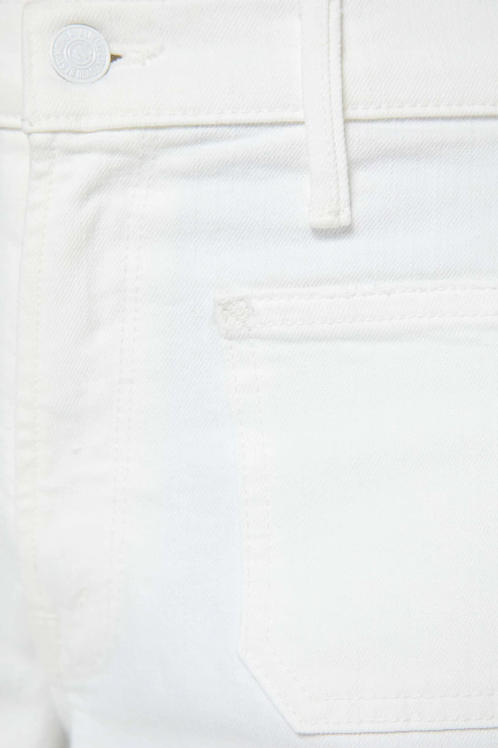 MOTHER's in the clear. Mid-rise jeans with a loose fit, zip fly, wide leg, patch pockets and ankle-length inseam with a clean hem. Cut from semi-rigid SUPERIOR denim, Totally Innocent is a classic white with tonal hardware.