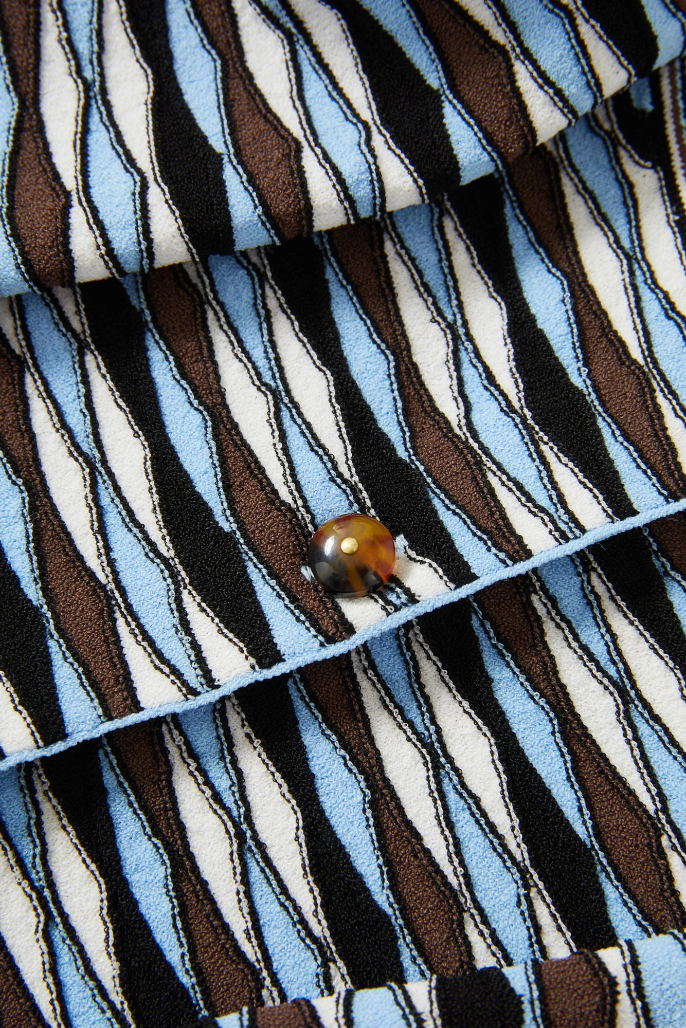 Crafted from a premium stretch knit, the Cambria cardigan features a blue ripple diamond jacquard pattern for a modern take on prep. Designed for a slim fit, it features a classic crew neckline, contrasting striped trim, and extra-wide hem. Mini tortoise buttons complete the look. Pair with wide-leg denim and heeled booties for an elevated day look.