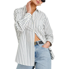 The perfect lightweight button down you’ll layer, tuck and tie all year long! Featuring a pure cotton design with classic stripes, a relaxed, boyfriend fit, long sleeves with button cuffs, and a chest pocket for an elevated essential style.