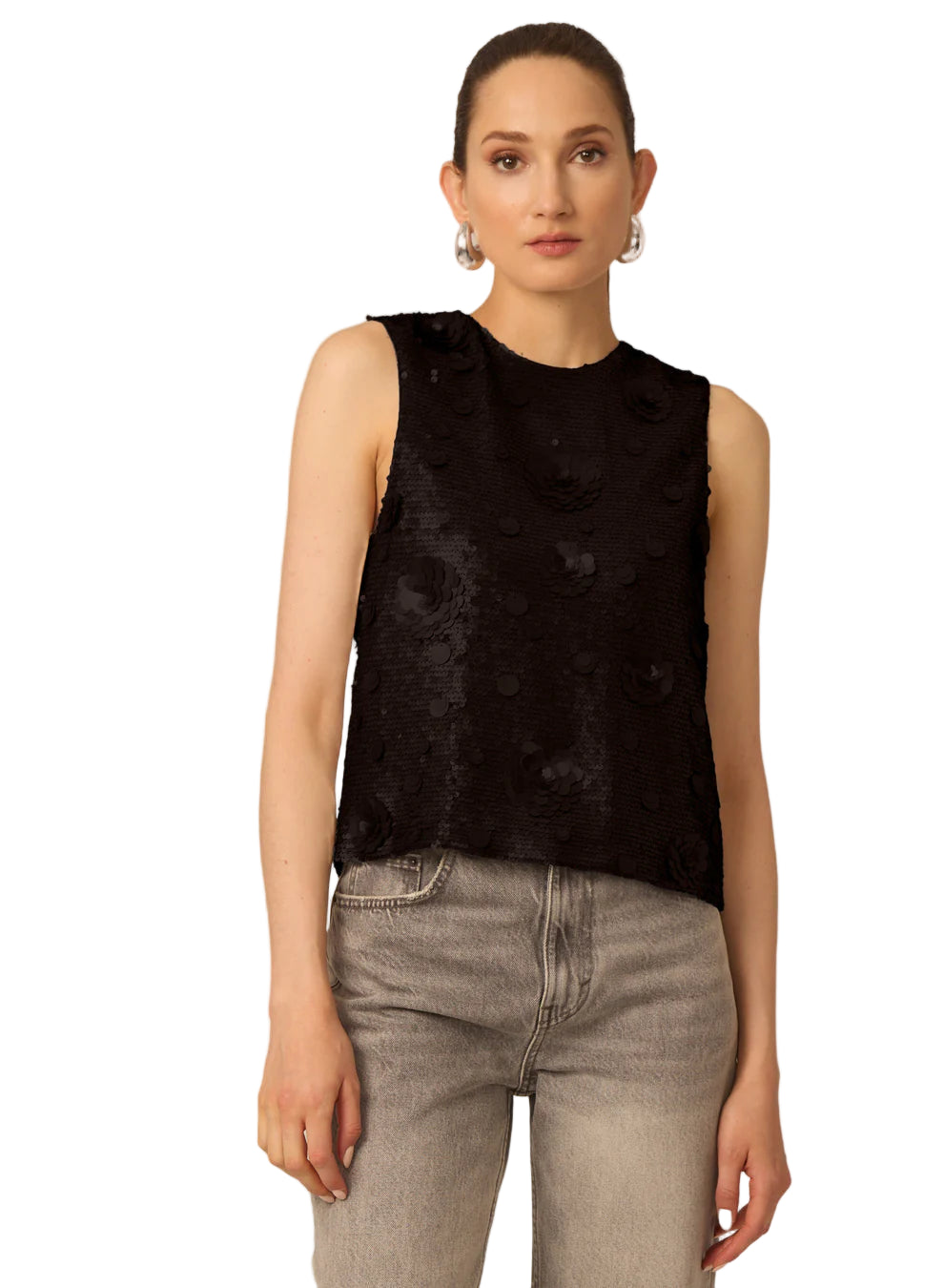 Piper top in Black Sequins Flowers