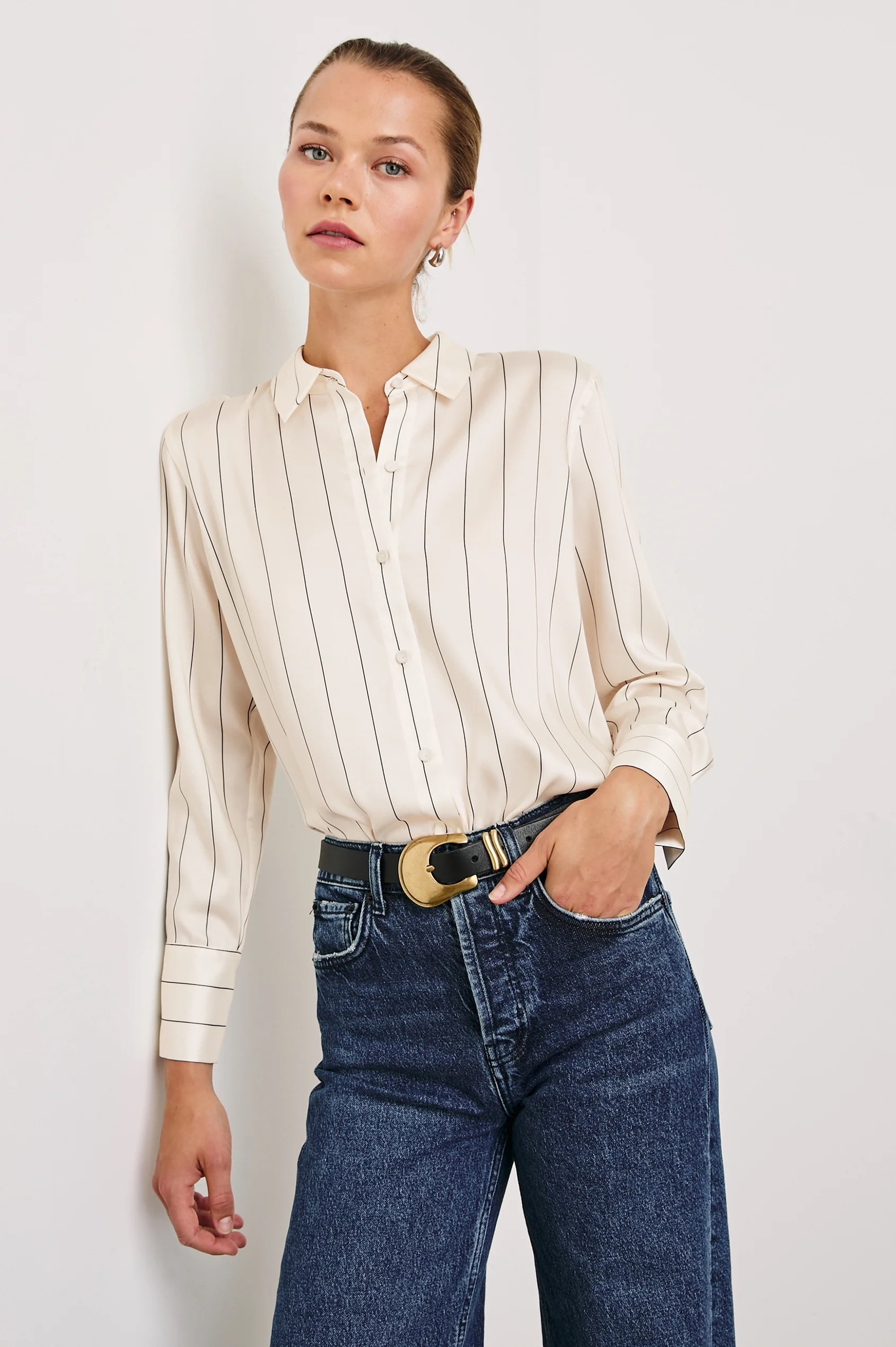 The Saige is the ultimate lightweight layer, made from supple, shiny twill. Contrasting collars and cuffs nod to heritage styles, making this the button-down you’ll reach for all season.