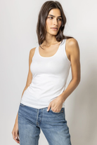 These layering pieces have been relaunched and are better than ever! Made with beautiful Pima cotton and add a touch of Spandex for the perfect fit. With narrow trims, this scoop tank is clean and simple and layers beautifully under any fabric.