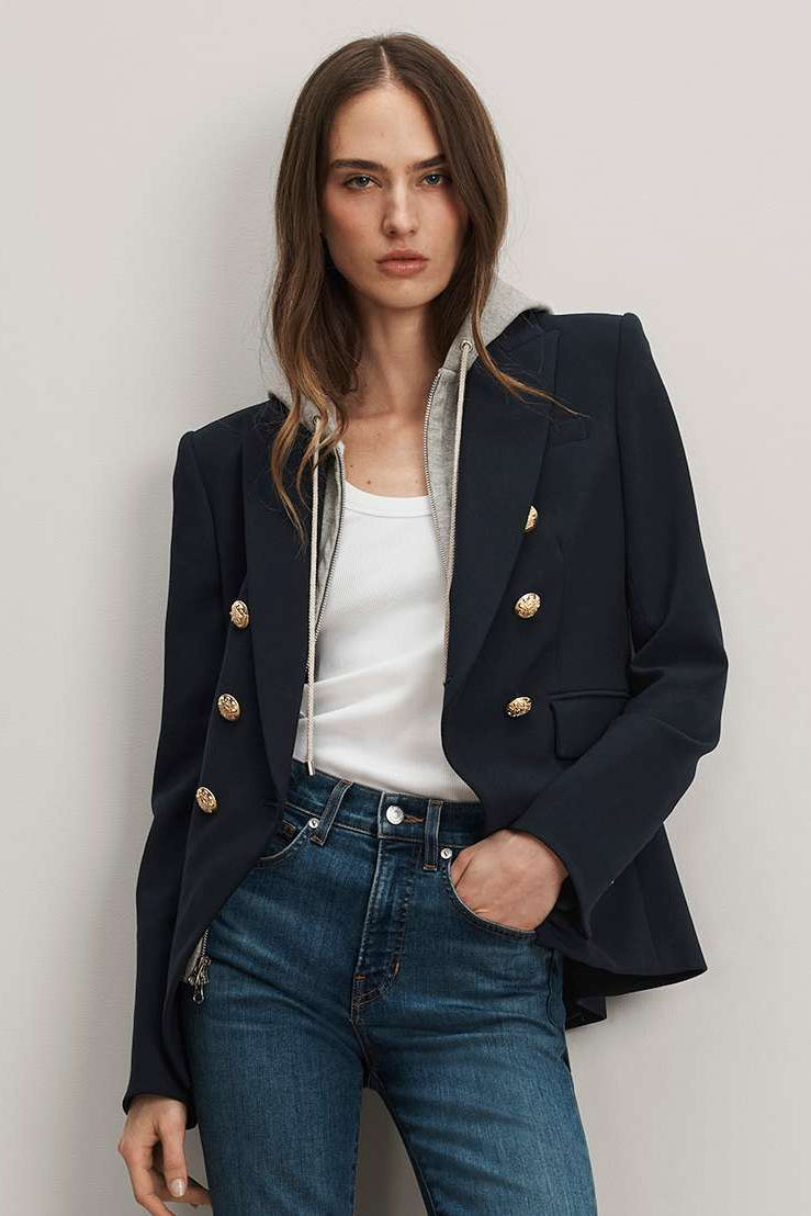 Where it all began. Crafted from grey French terry with subtle stretch, this classic hoodie dickey is a bestseller for a reason. Designed with adjustable drawstrings for the perfect fit, it’s finished with a wide, ribbed hem and silver zipper and aglets. Layer under your favorite VB dickey jackets to add a casual-cool twist to tailored looks.