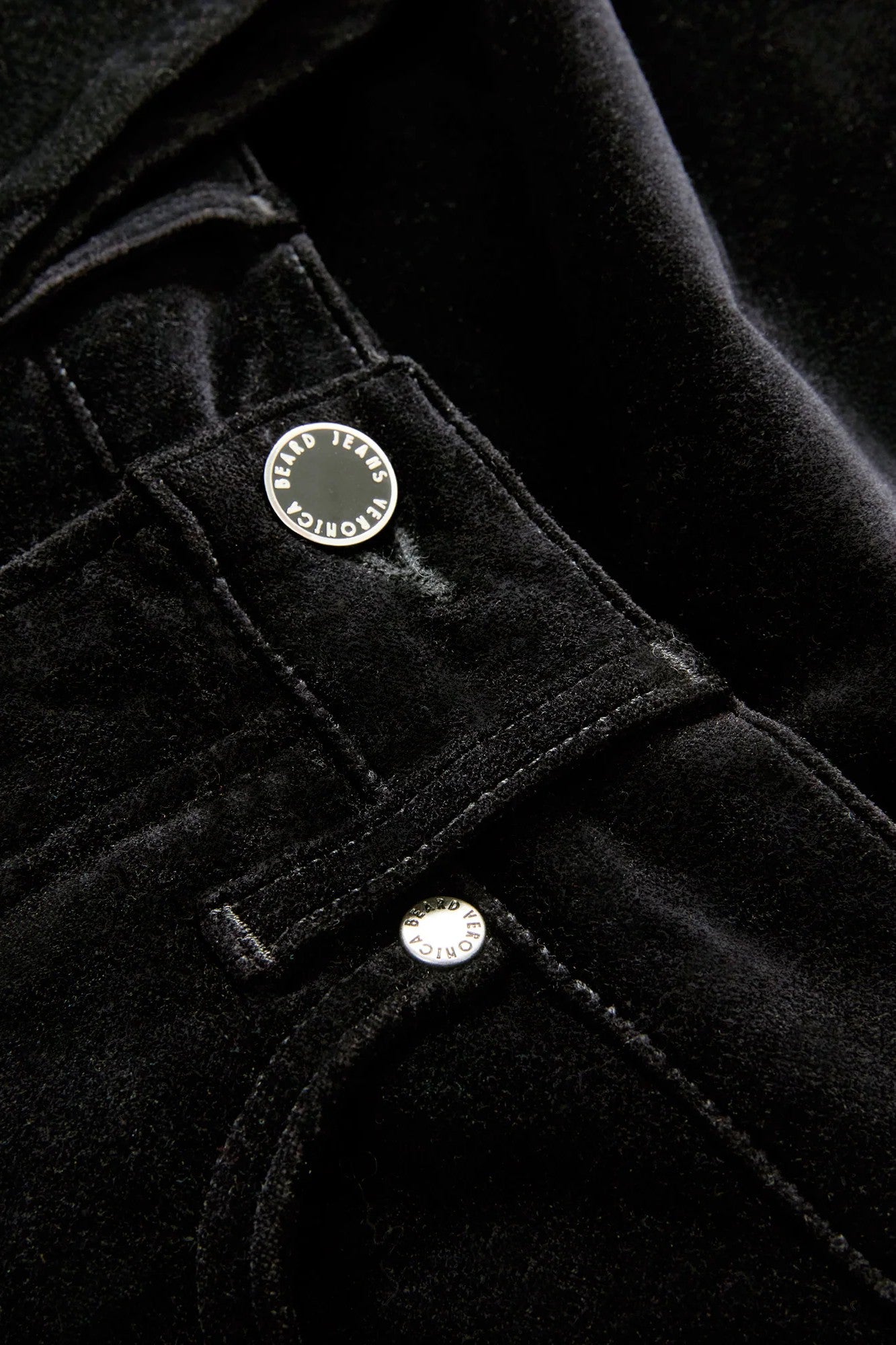 The best-selling Beverly—now in sleek stretch black velvet. It features the same high-rise waist and subtle flare you know and love, fitted through the hips and thighs for a flattering, legs-for-days effect. Tuck in any of Veronica Beard's tops and add sky-high heels for an elongating, head-turning look.