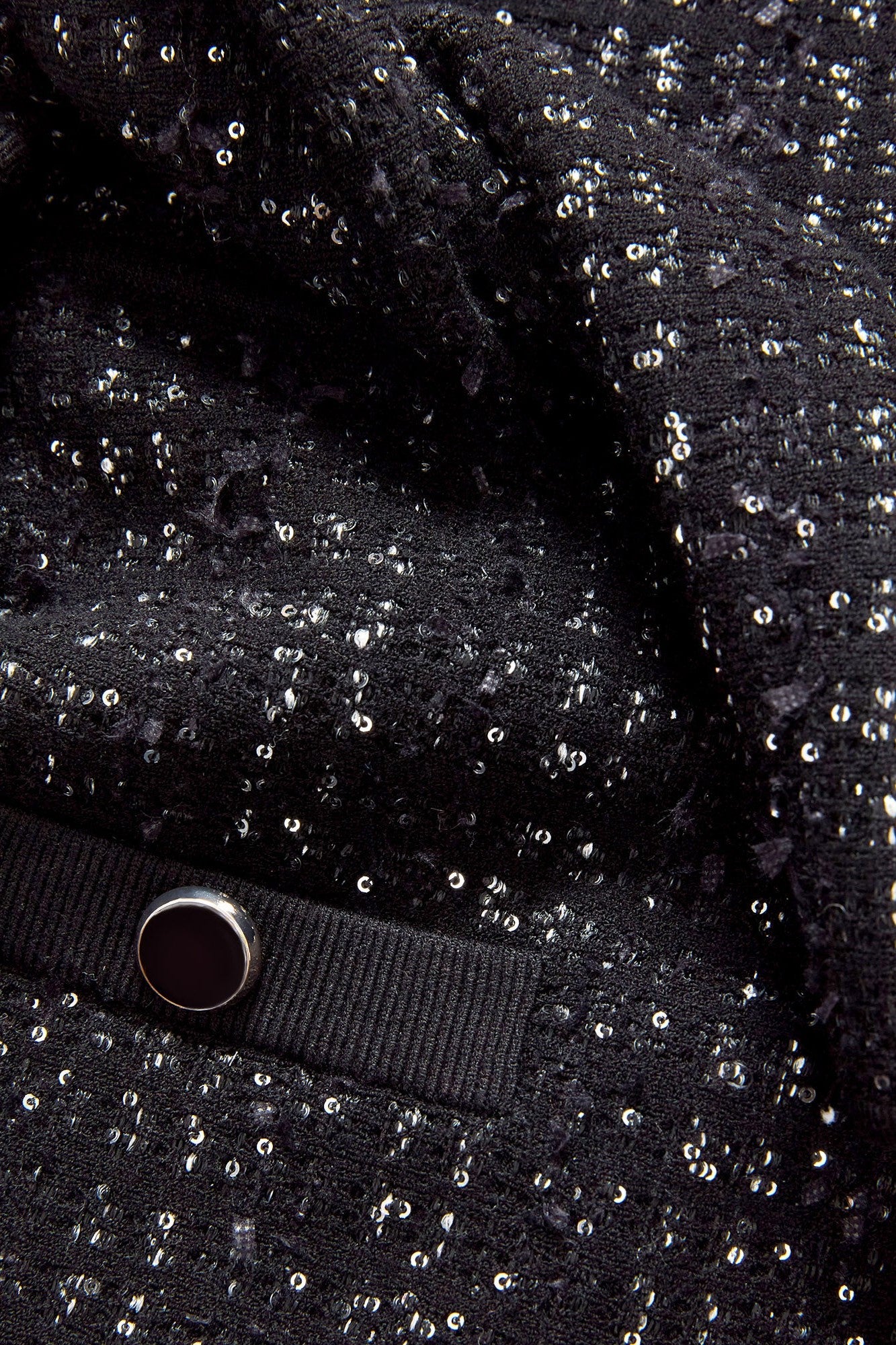 An opulent take on the jewel-neck Channing dress. Crafted in a black tweed-like knit with subtle stretch, it's embellished with sequins for subtle shine. Its clean, streamlined silhouette is finished with long sleeves and front hip pockets. A versatile go-to, its equal parts refined and elegant. Pair it with slingbacks or a tall, heeled boot for a night out.
