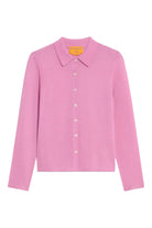 An extra-light weight sweater featuring front button placket, shirt collar with stands, and signature GIR branding at the center of the back.