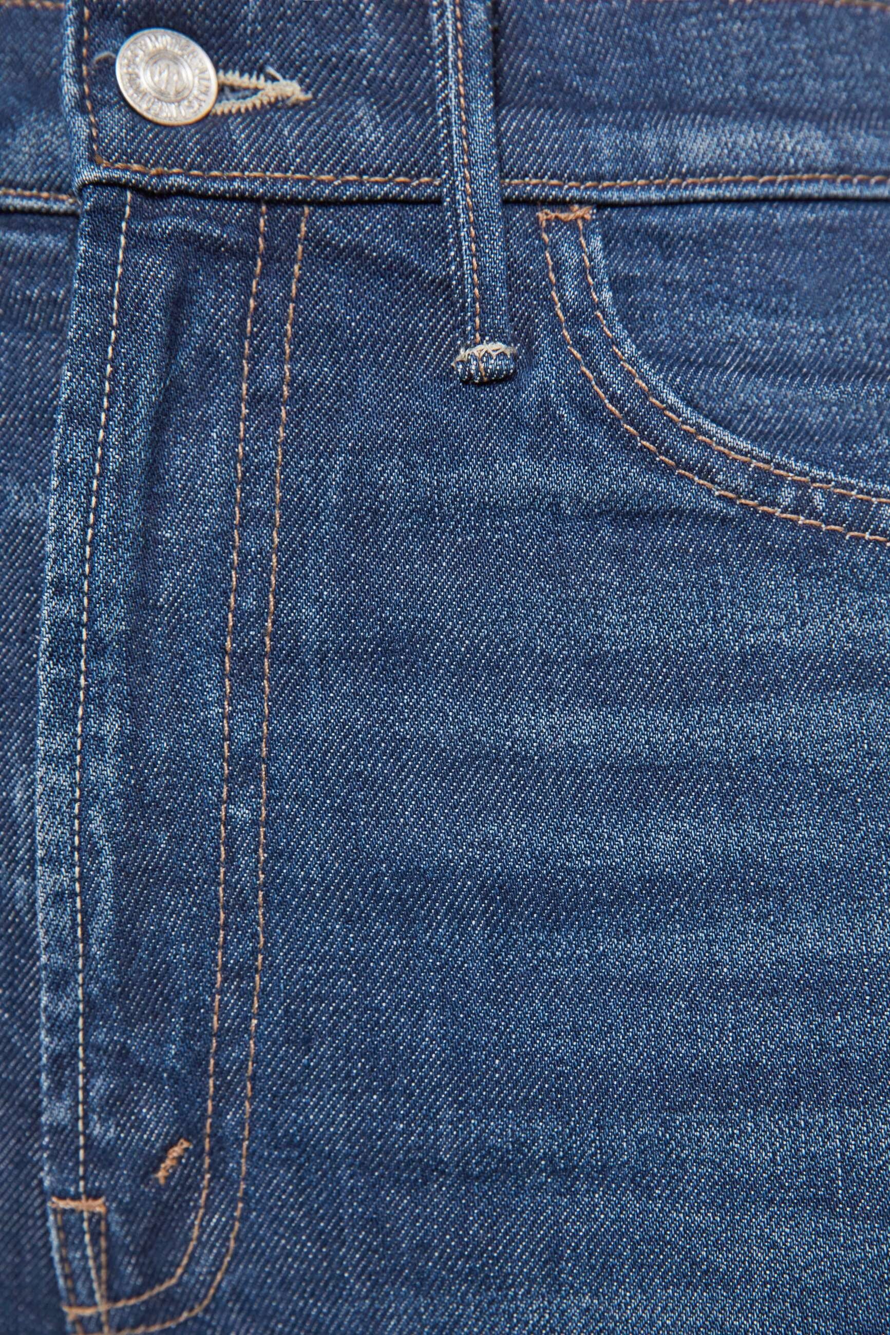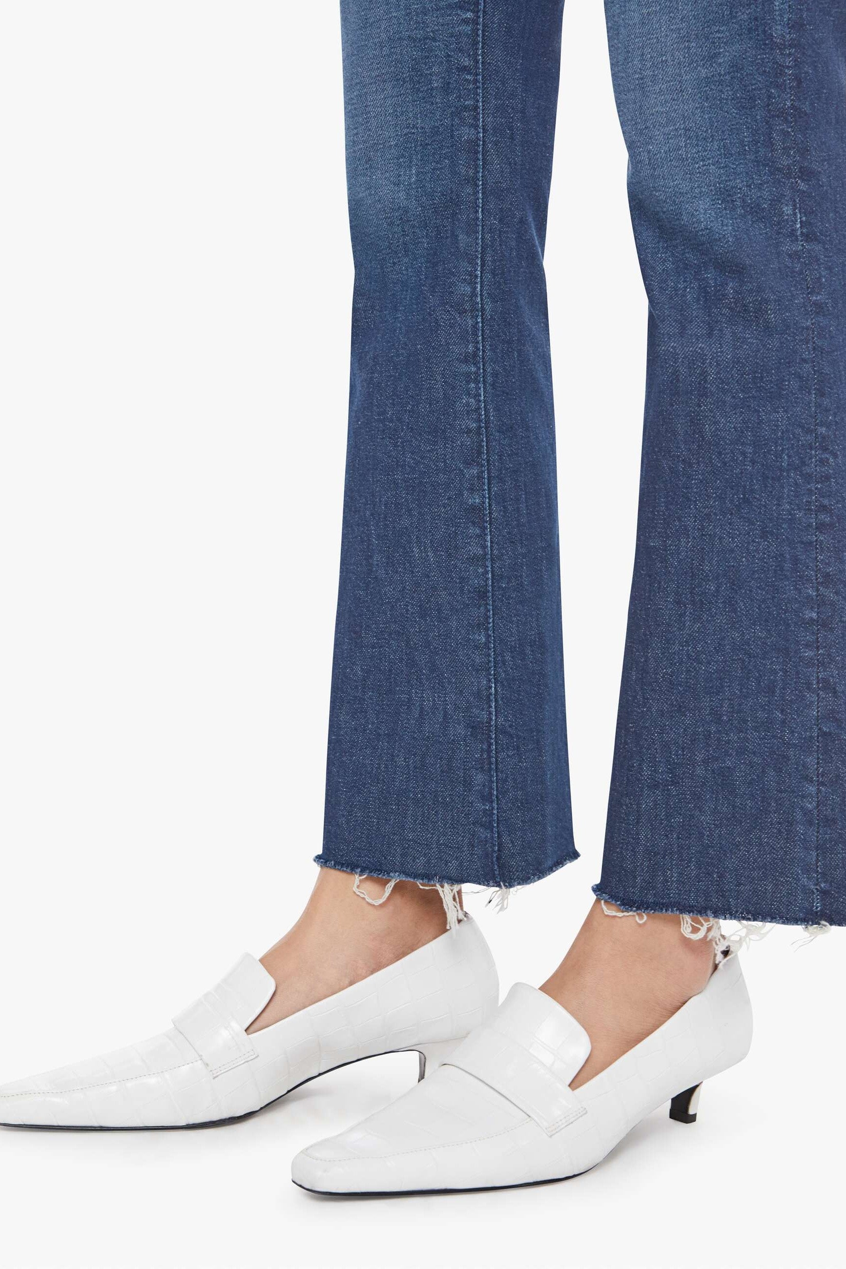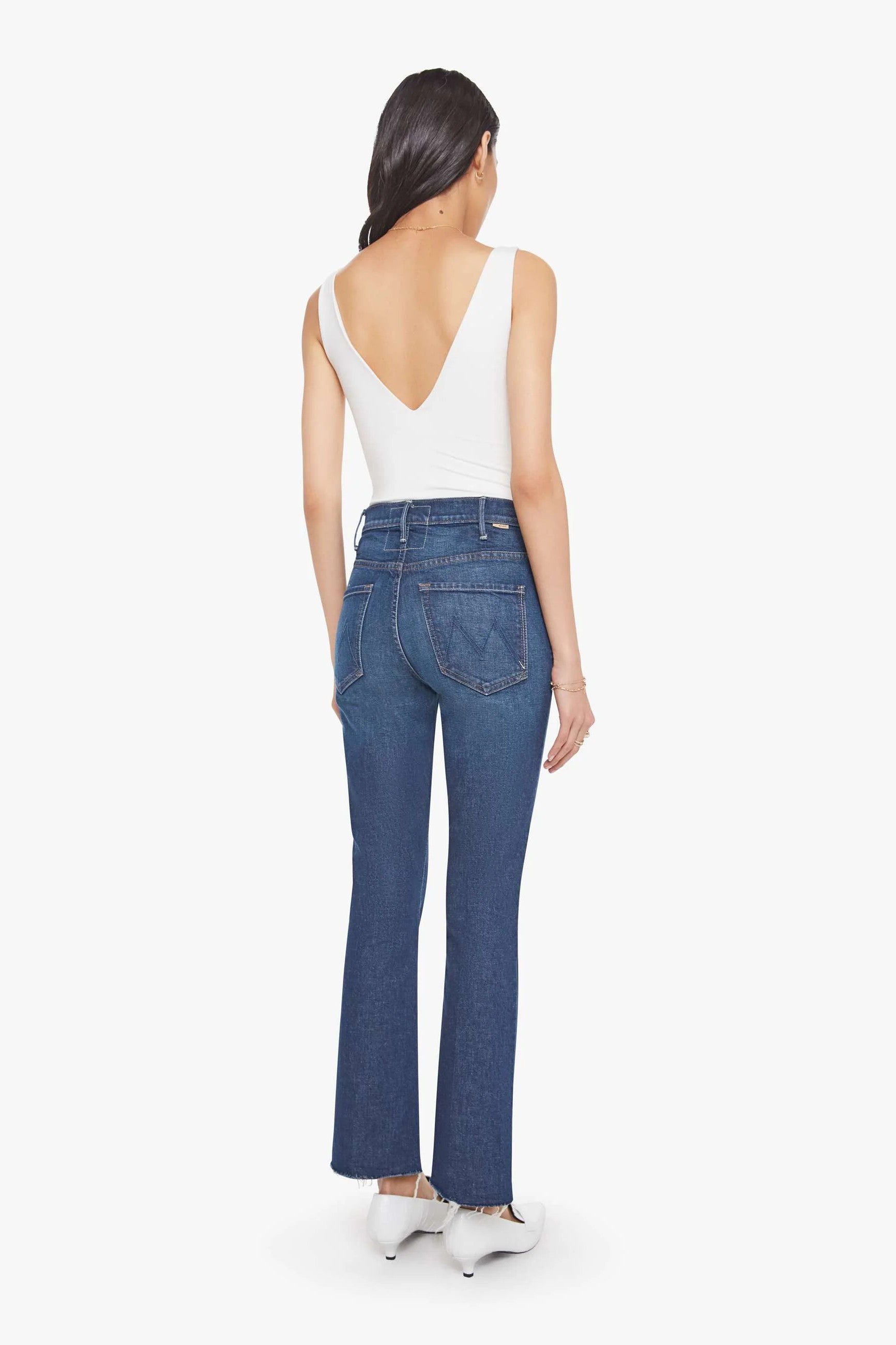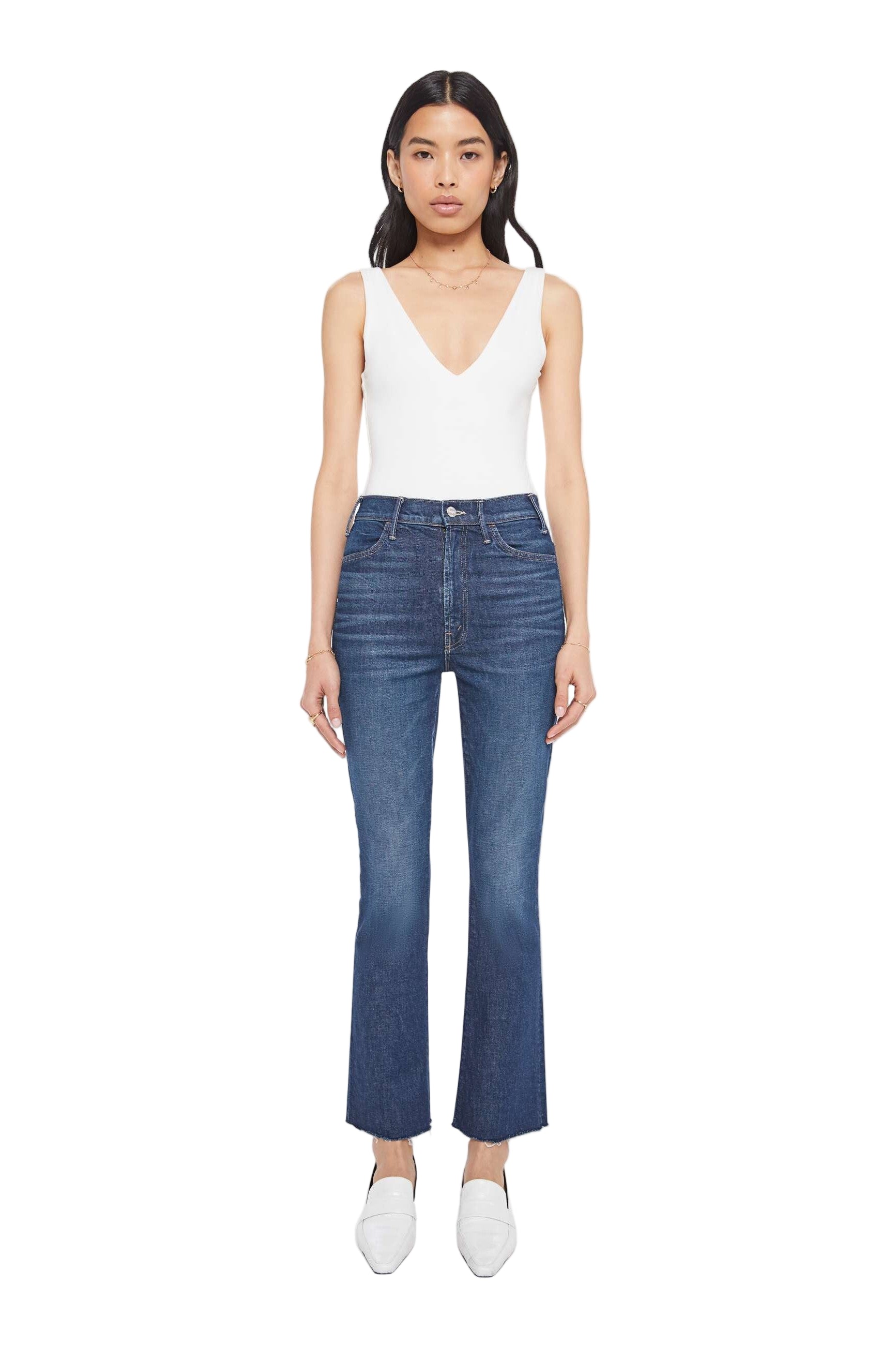 This high-rise flare has a zip fly, 28.25-inch inseam and a frayed hem. Made from semi-rigid SUPERIOR denim, Kicks and Riffs is a dark blue with subtle fading and whickering.