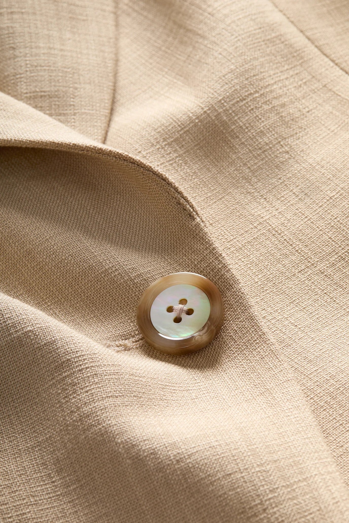 The Battista in khaki will quickly become your new go-to, thanks to its sleek look and impeccable fit. Expertly tailored from a premium stretch blend, this blazer jacket features a classic single-breasted silhouette and pre-ruched sleeves that add an element of nonchalance. Dress it down with jeans or pair with the matching pant for a modern update on the power pantsuit.
