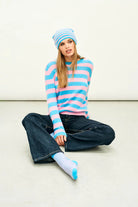 Jumper 1234 cashmere jumper. Aqua and candy stripe cashmere crew neck jumper, with distressed ribs.