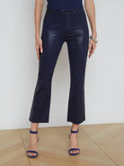 The perfect wear-now cropped flare jean, designed to be compatible with flats or heels. This beautifully proportioned kick flare is now back in mauve leather-alternative coated denim.